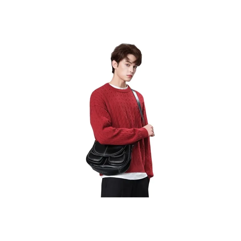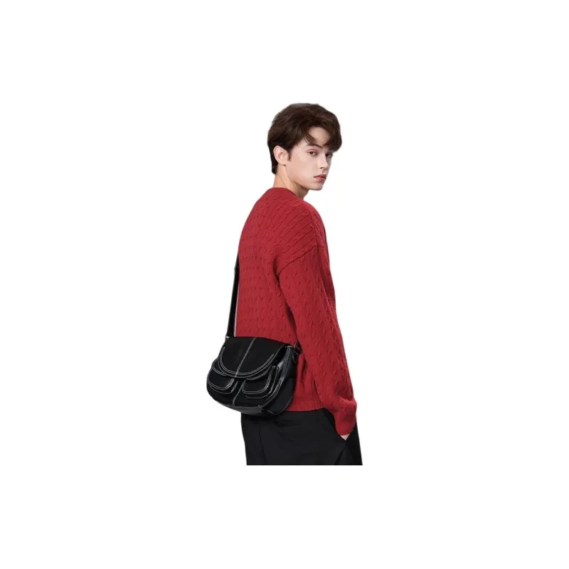 SHIZIYOUA Сумка через плечо из натуральной коровьей кожи стандартная мужская черная