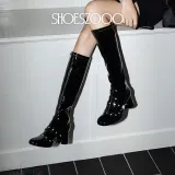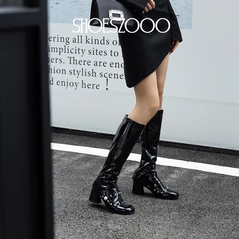SHOESZOOO Колено Высокие сапоги 6,5 см Женские Хепберн-черные
