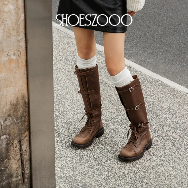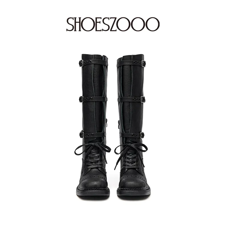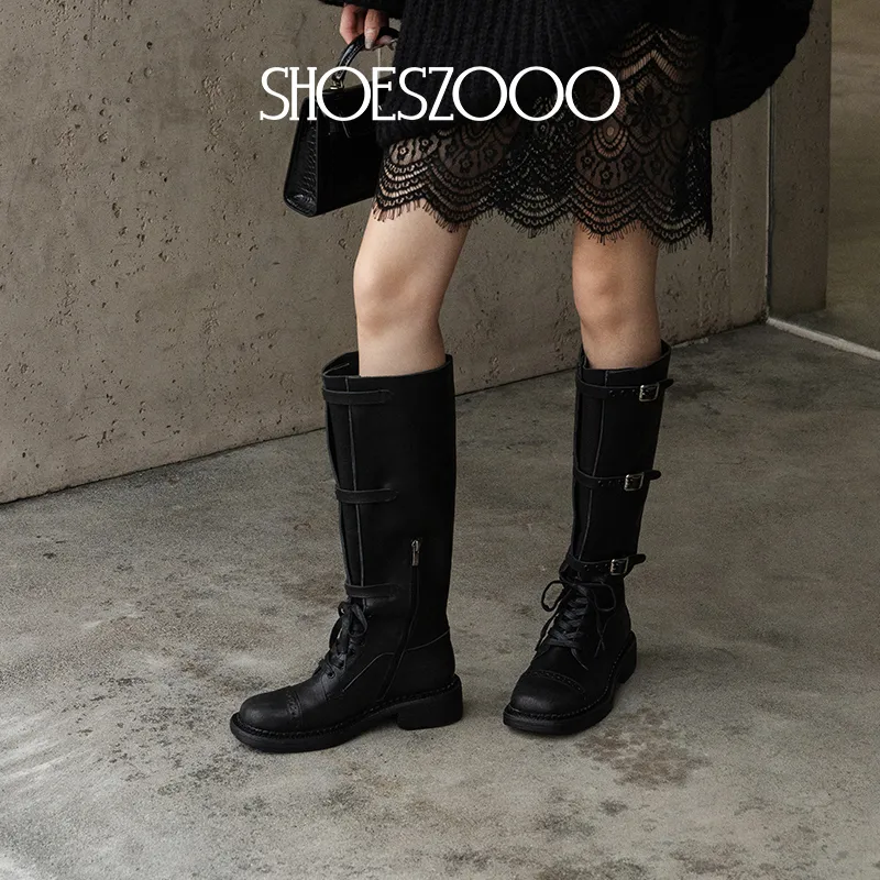 SHOESZOOO Винтаж Рыцарь Ботинки Колено Высокие сапоги 3,5 см Женские