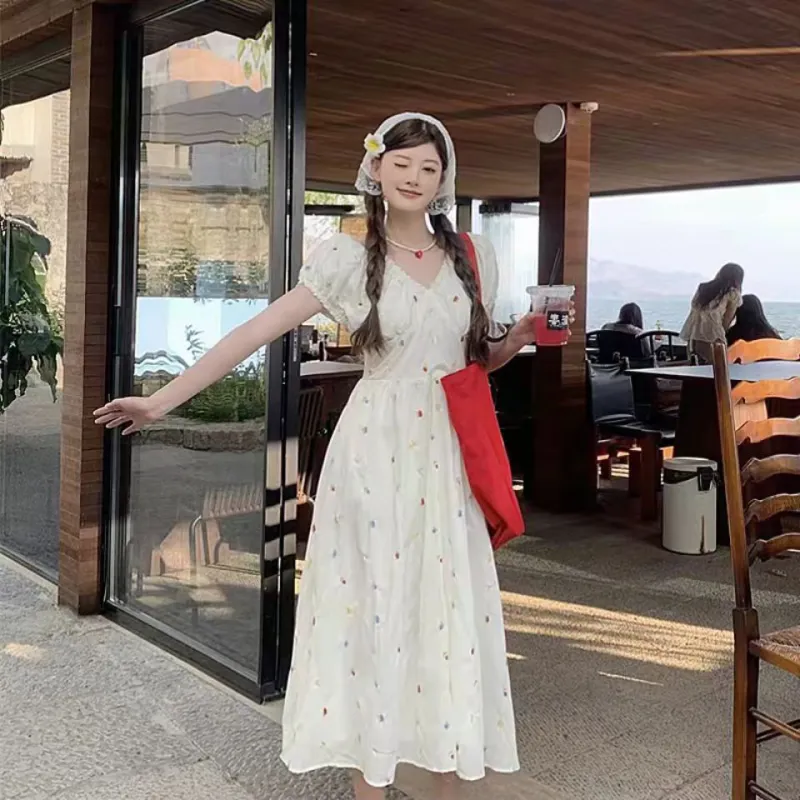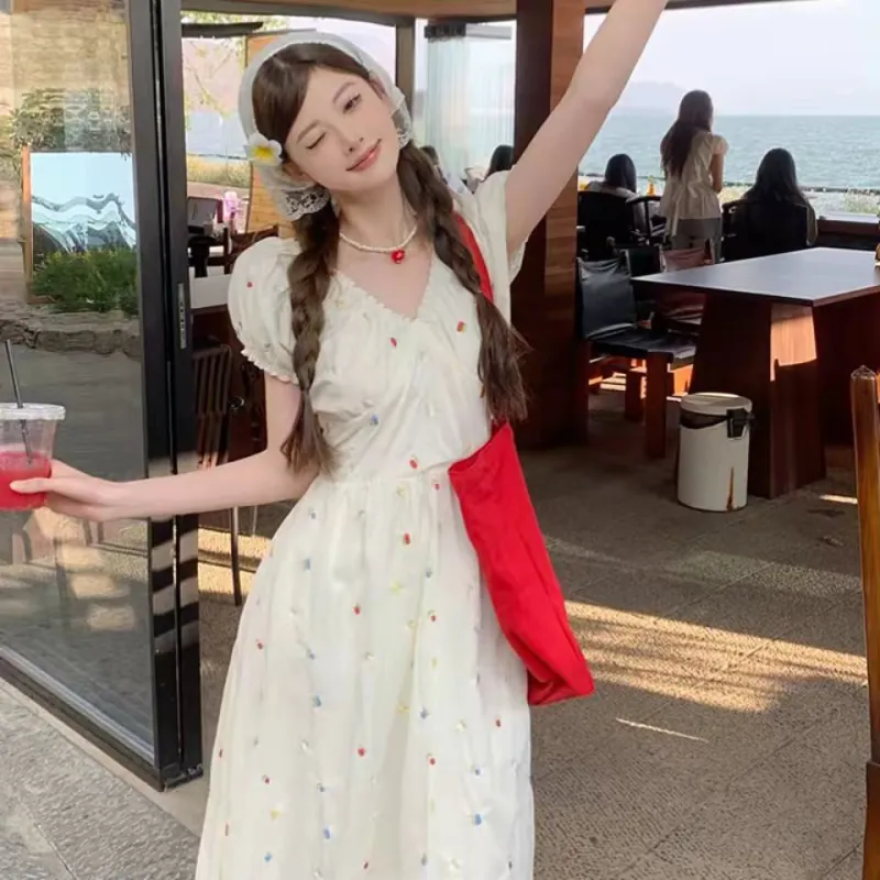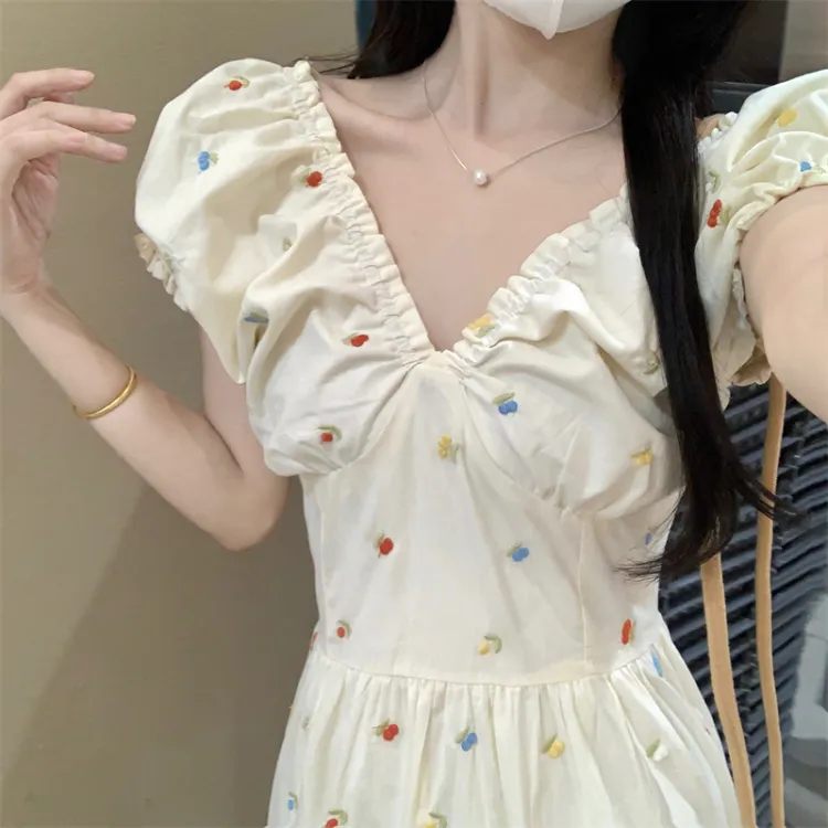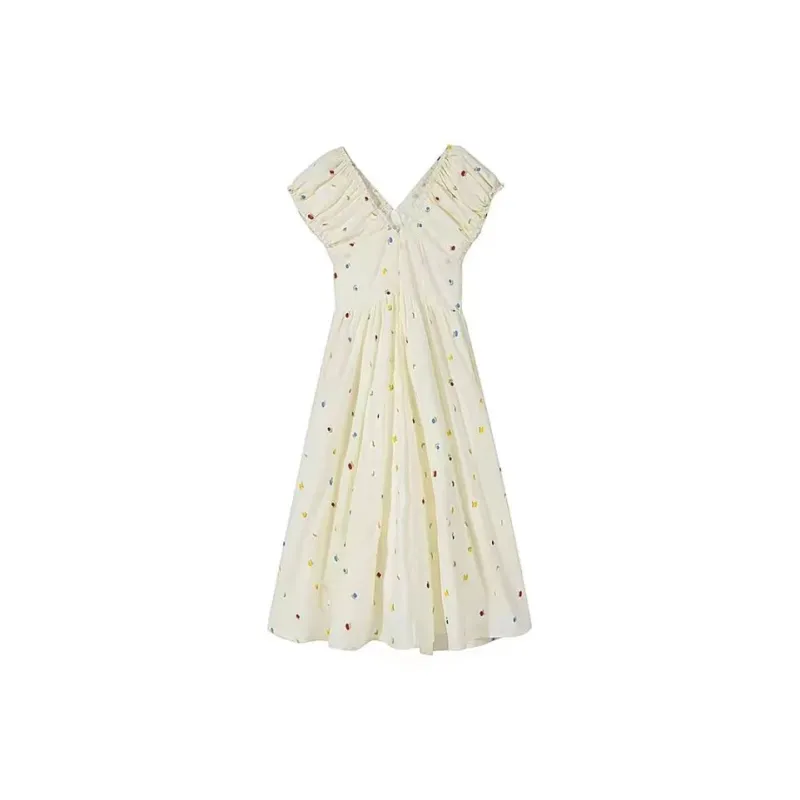 Женские платья с короткими рукавами и радужной вышивкой