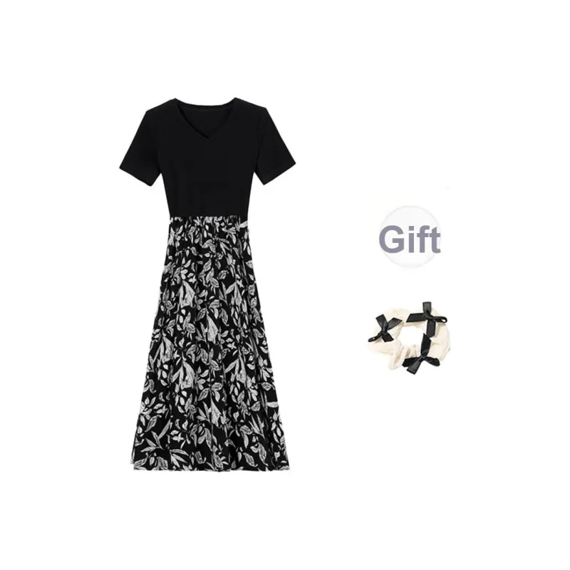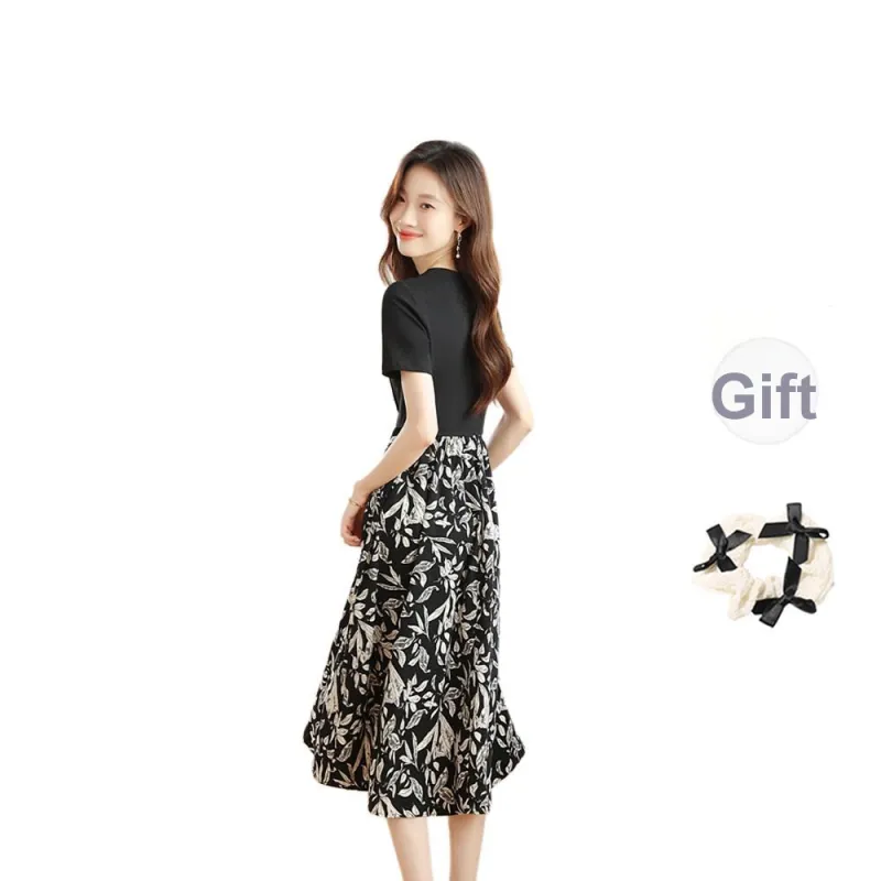 Короткое платье с короткими рукавами женское цвет дымчато-черный черный бант резинка для волос в комплекте с подарками