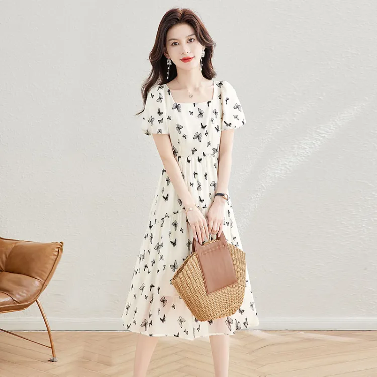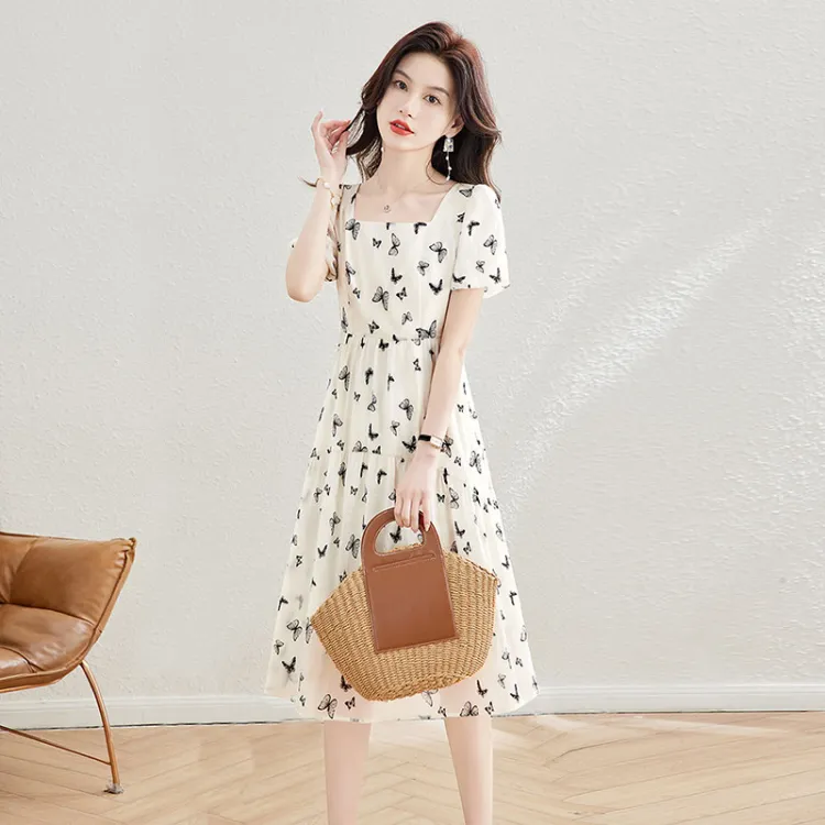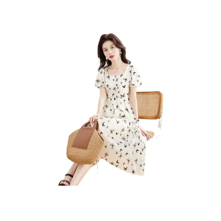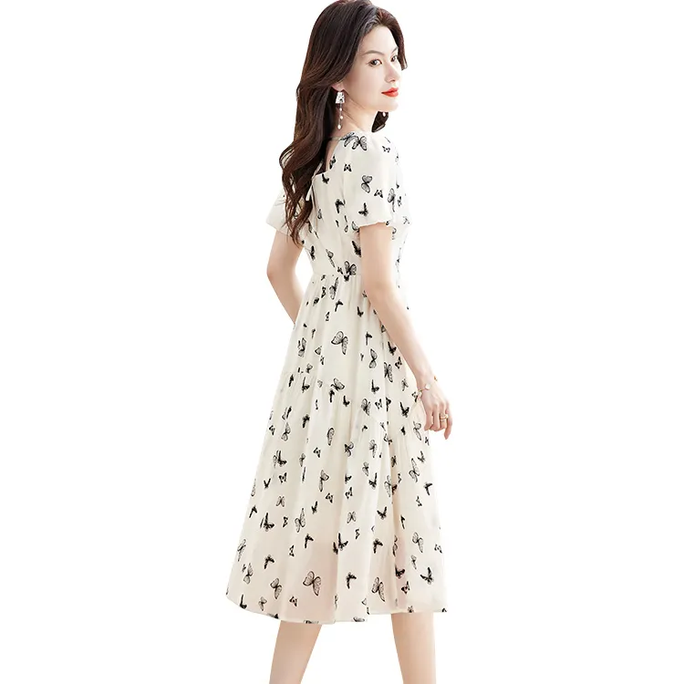 Короткий рукав платье женское абрикосовый черный бабочка