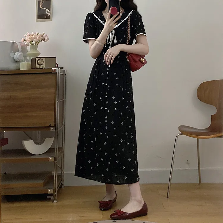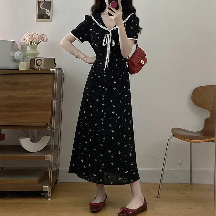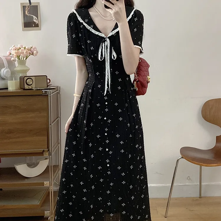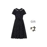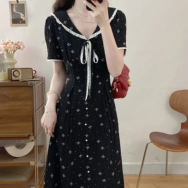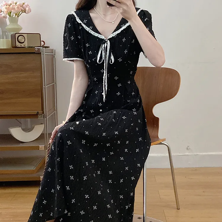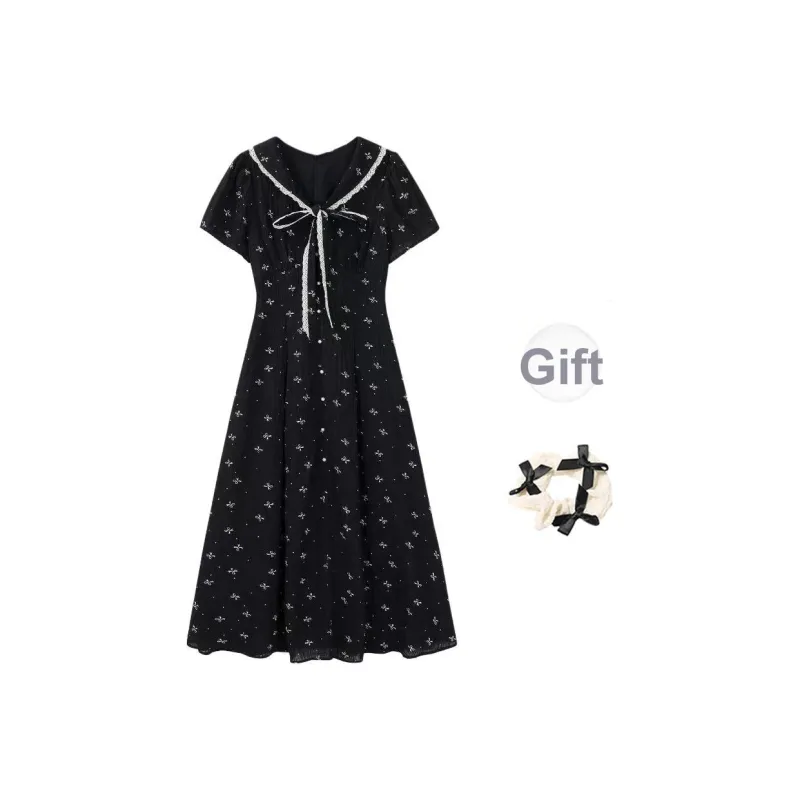 Черный + Бант Резинка для волос С подарками Женские Короткие Платья с рукавами Sleeved