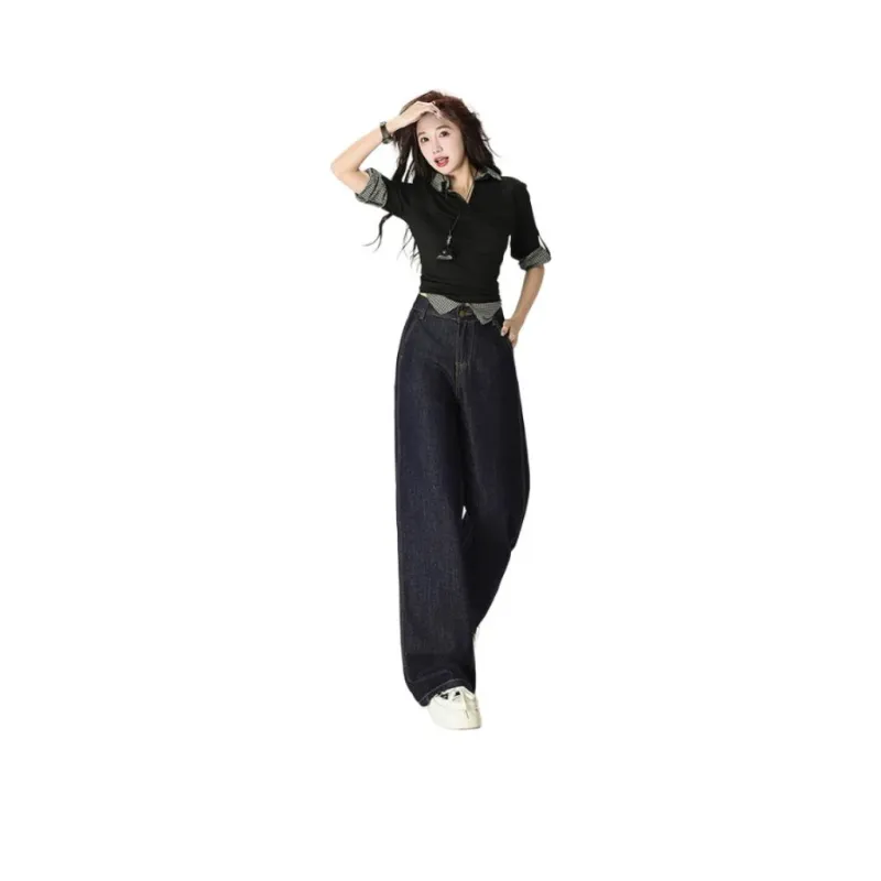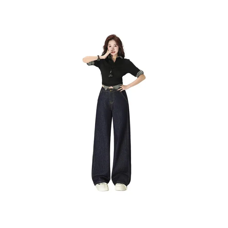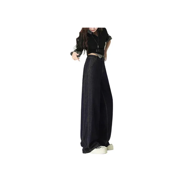 SHUHAOBAI Темно-синий синий женский джинсы