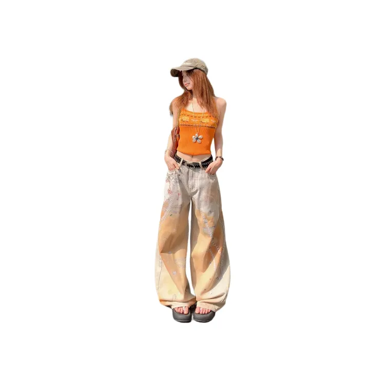 SHUHAOBAI Граффити Оранжевые Женские Джинсы