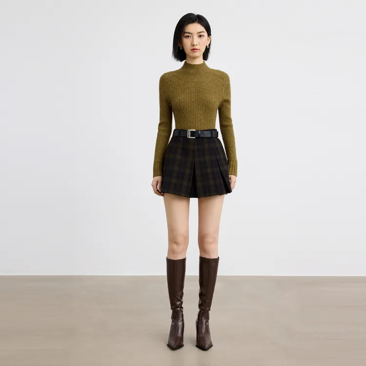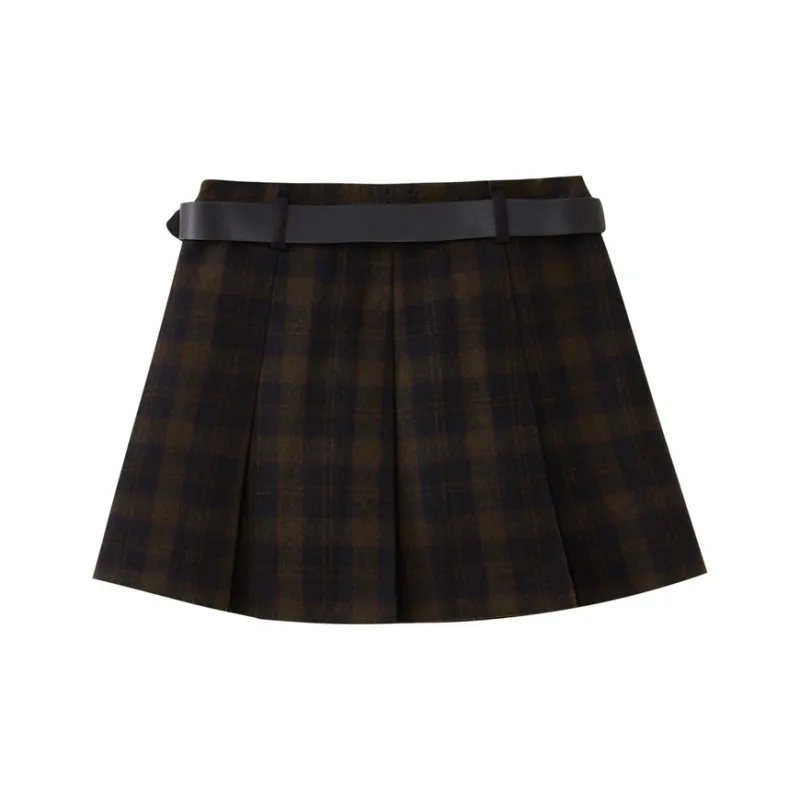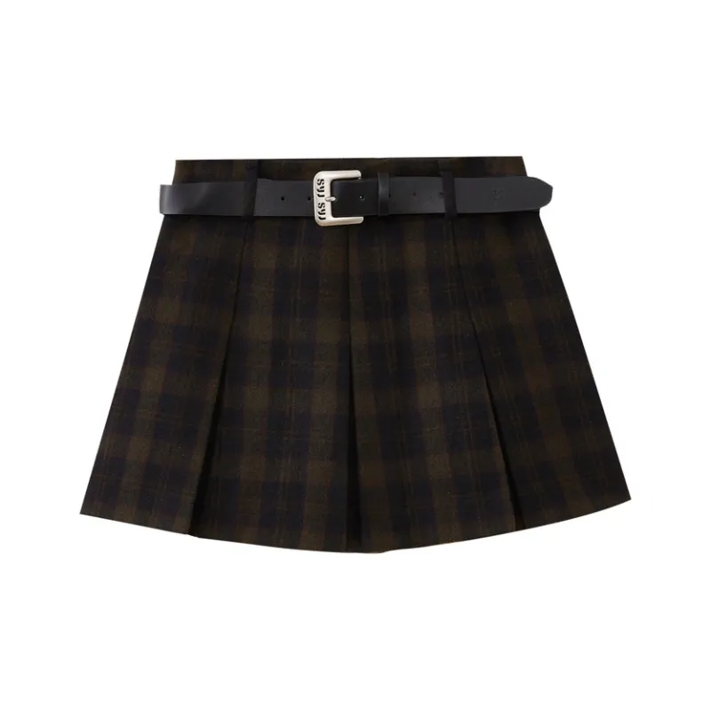 SHUIYUNJIAN Повседневная короткая юбка женская темно-синяя в клетку