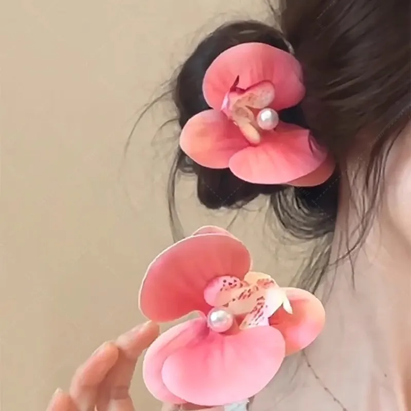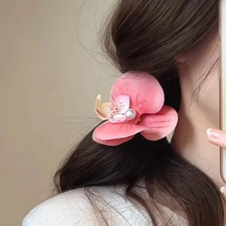 Стиль:Розовый цвет, орхидея, заколка «уточка»