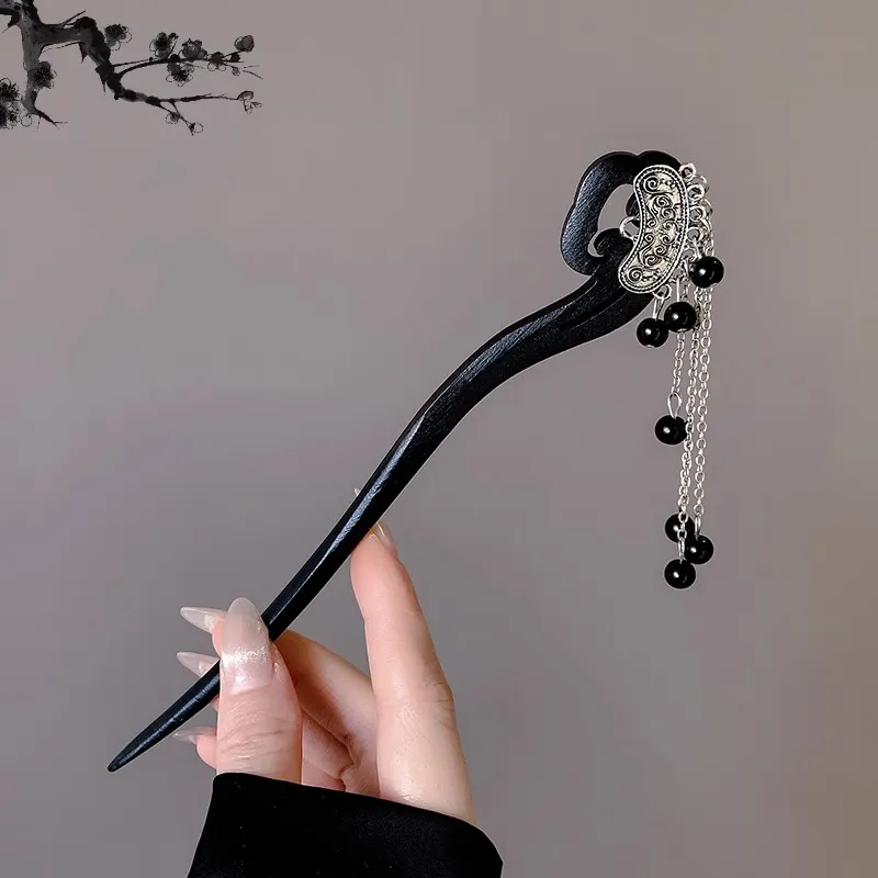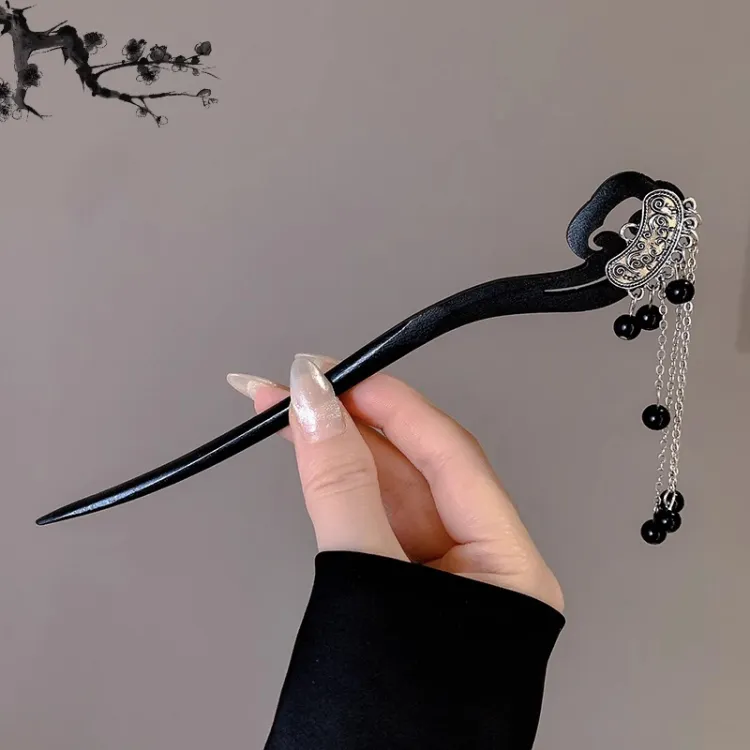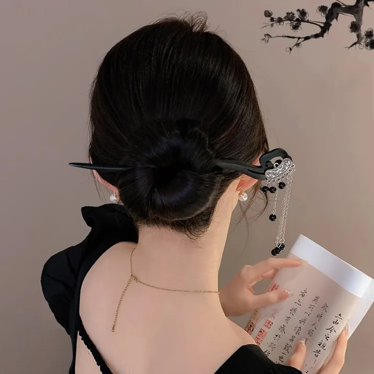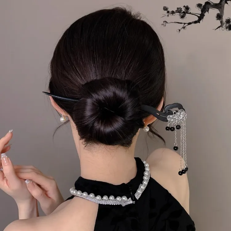 Стиль:Заколка Lucky Cloud с кисточкой, черная жемчужина