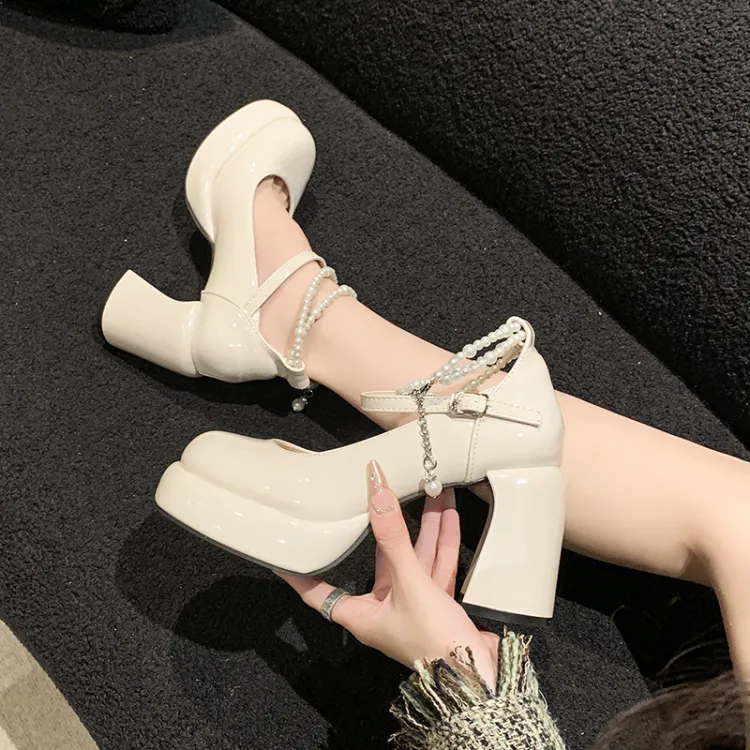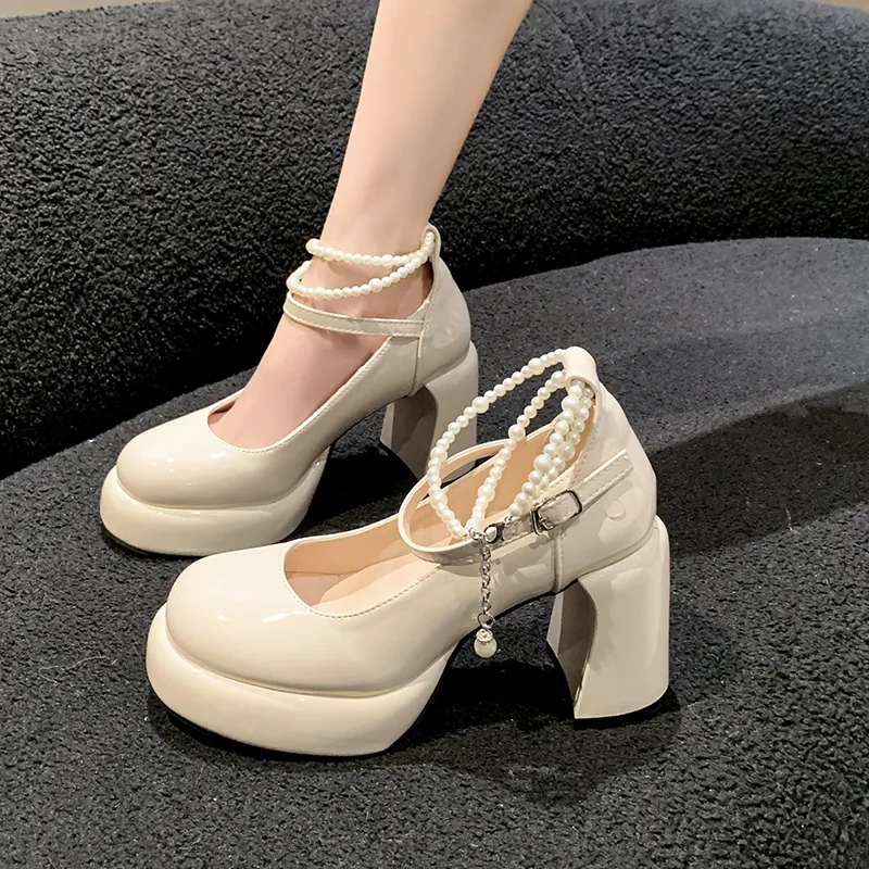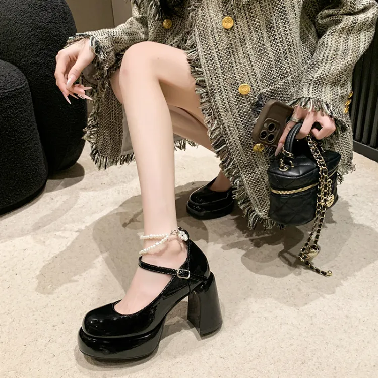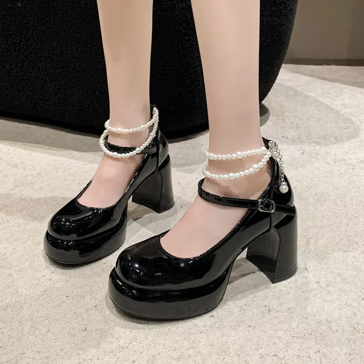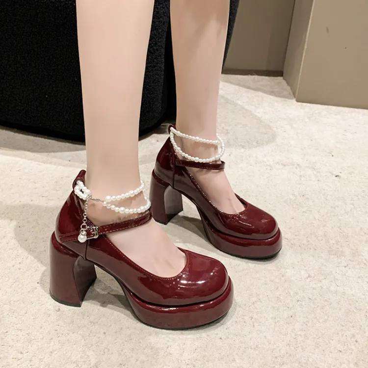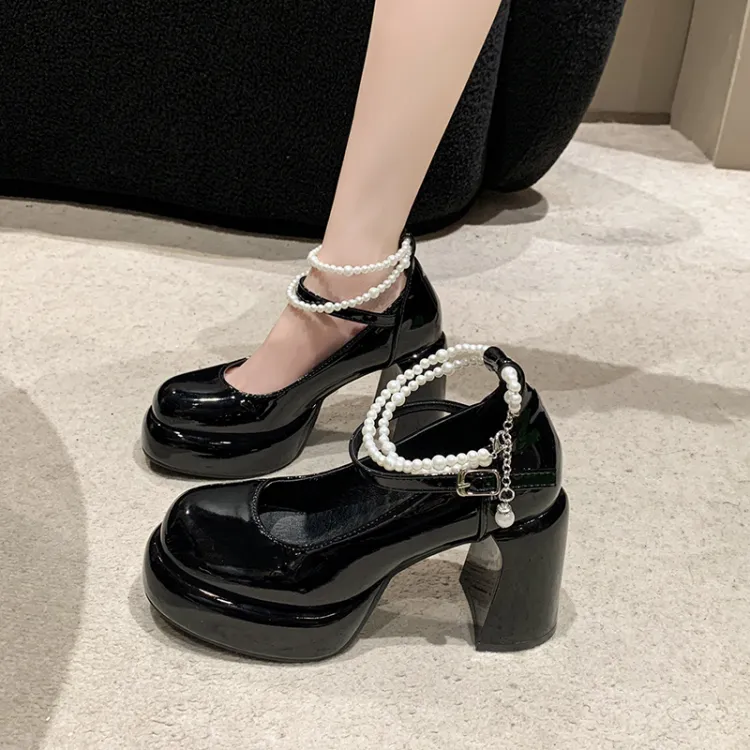 SHUMO Туфли Мэри Джейн с грубым каблуком 9 см женские