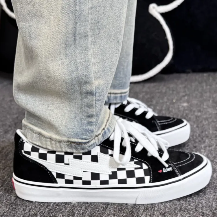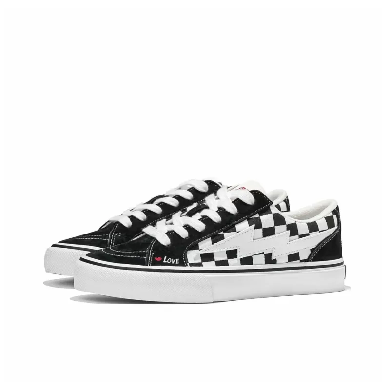 SHUMO Slip-resistant Abrasion-resistant Lightweight Breathable Low-top Skateboarding Shoes Unisex Black White Checkered