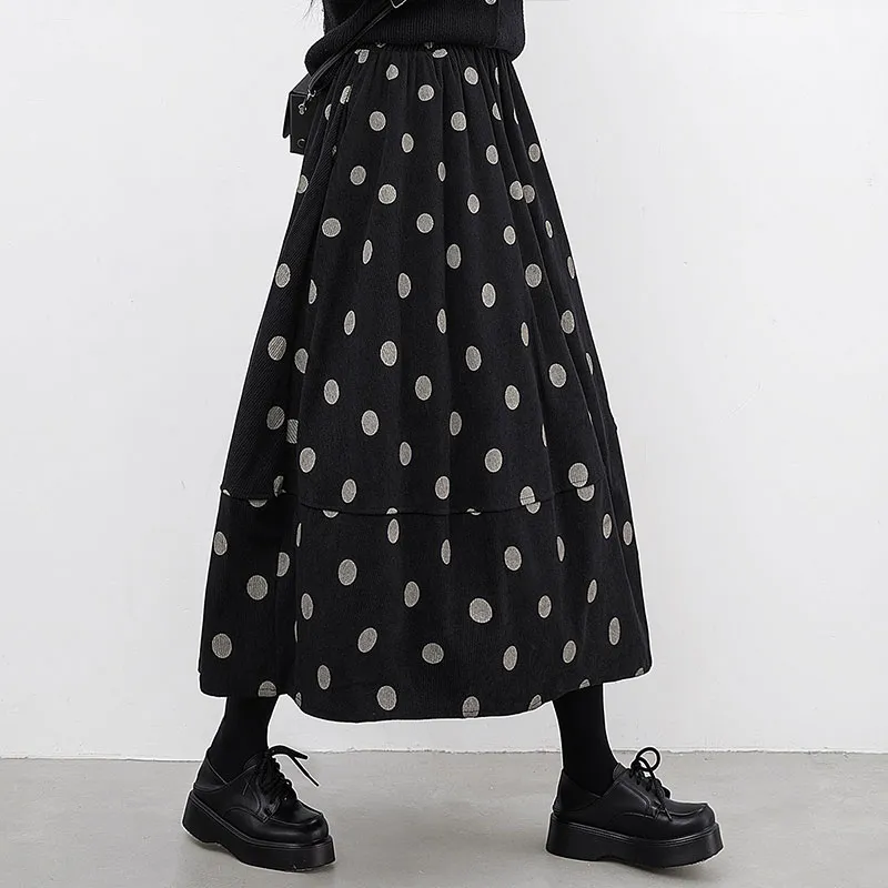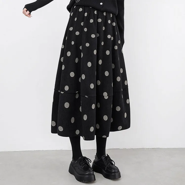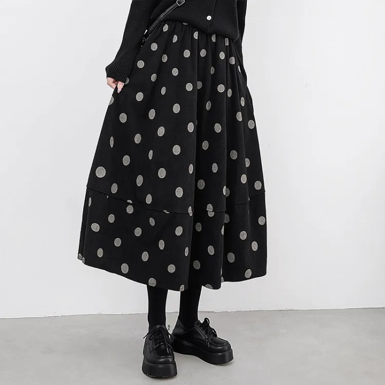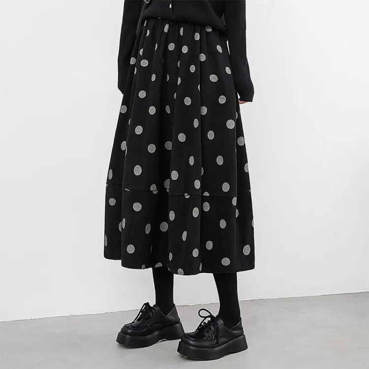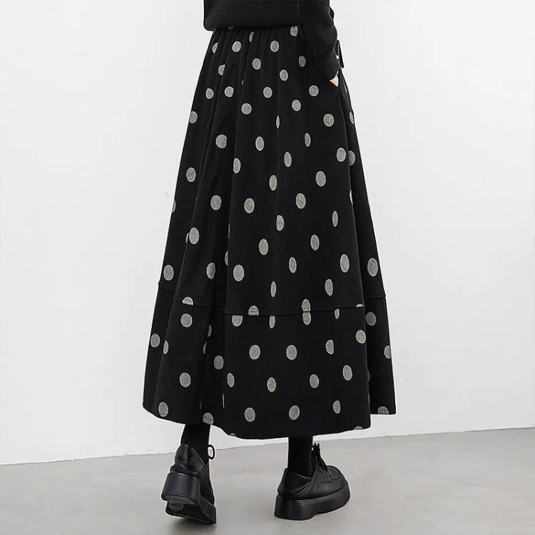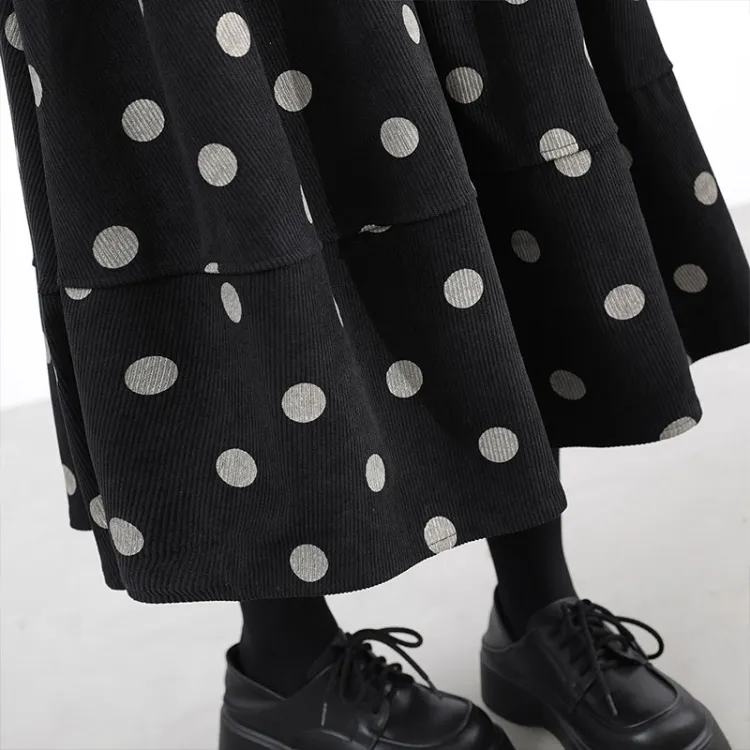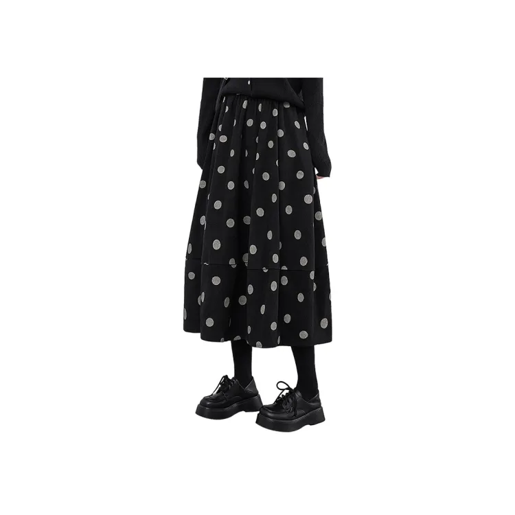 SIBAISHE Повседневная длинная юбка женская черная в горошек