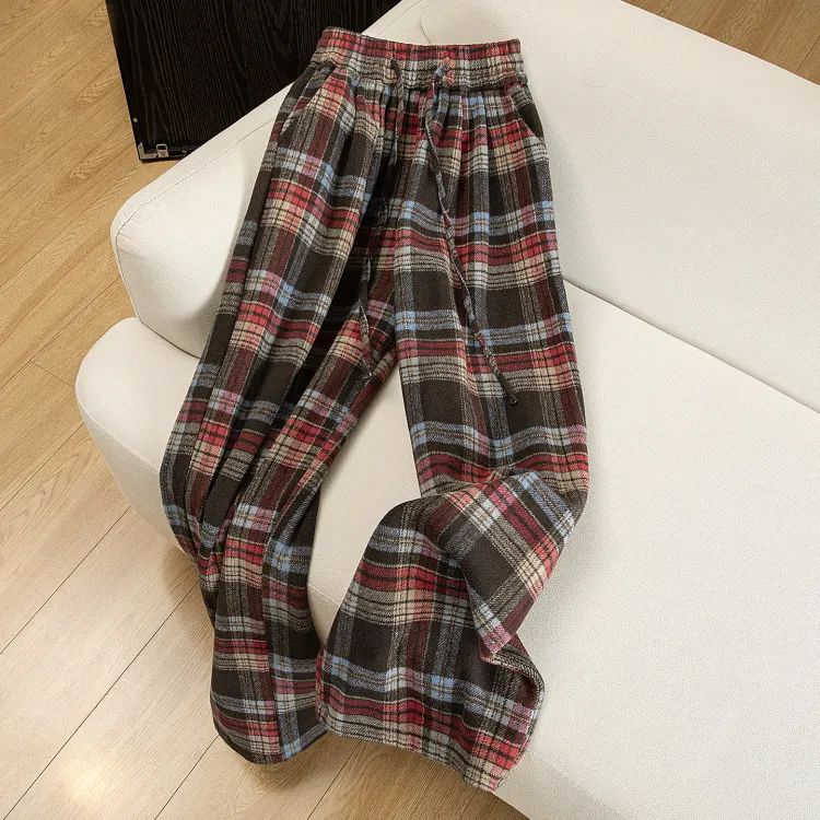 SIBAISHE Red Blue Plaid Women's Casual Pants SIBAISHE Красный Синий Клетка Женские Повседневные Брюки