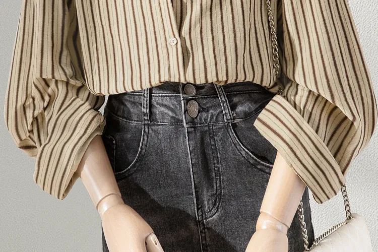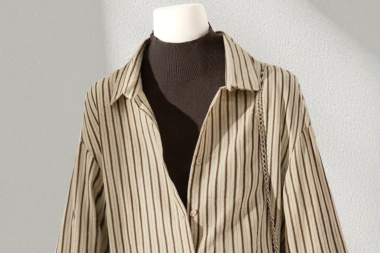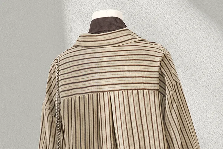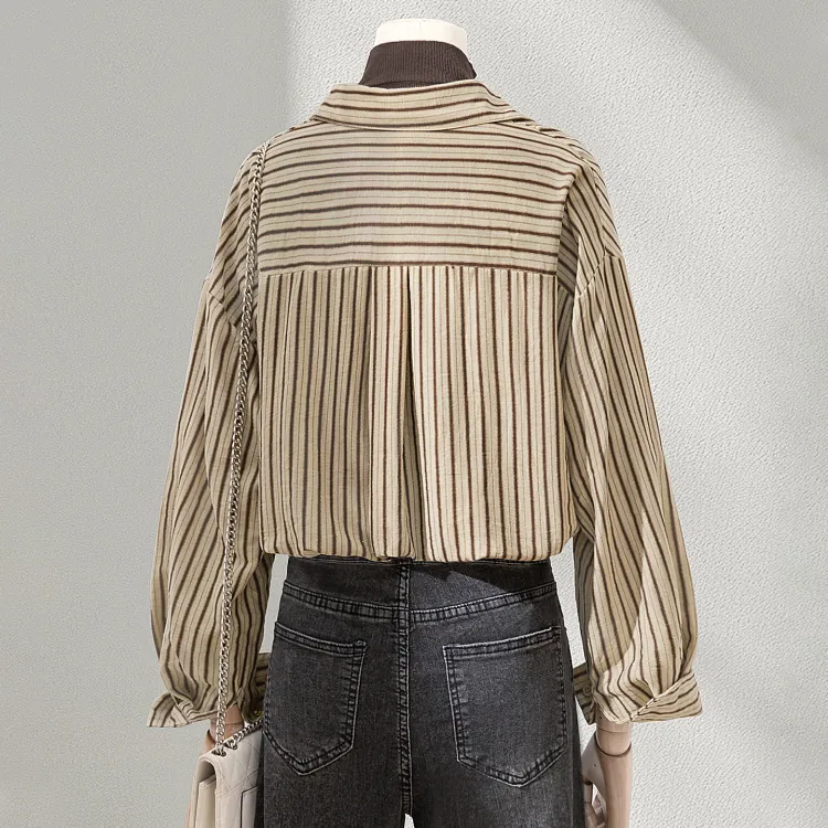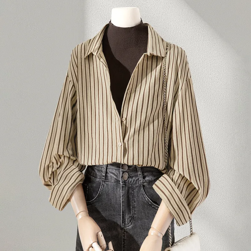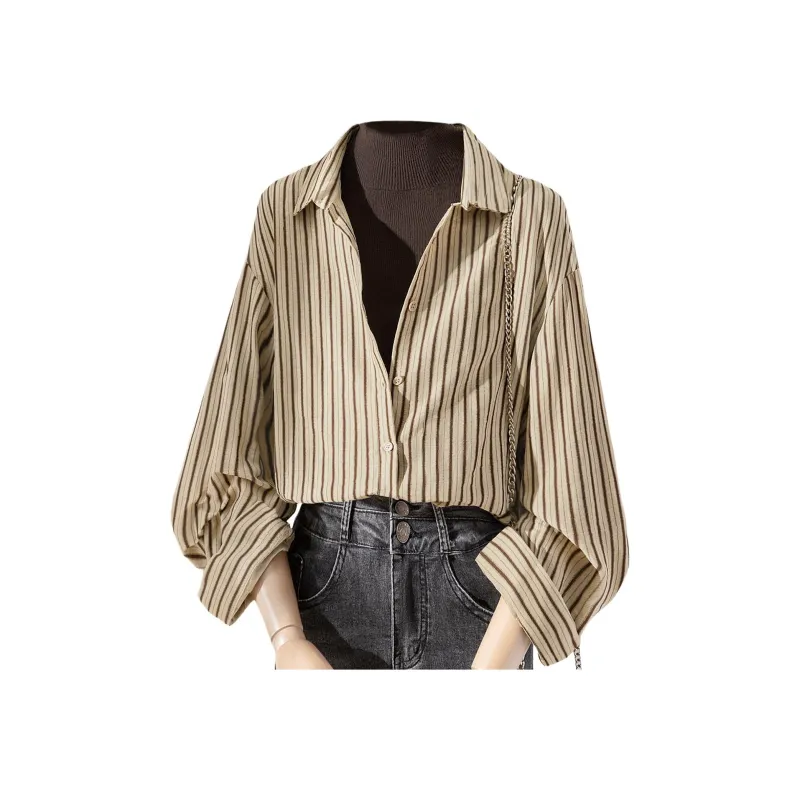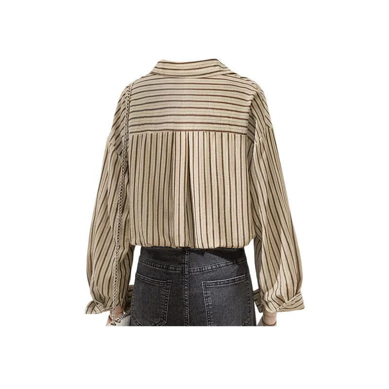 SIBAISHE Хаки Полосы Женские Рубашки