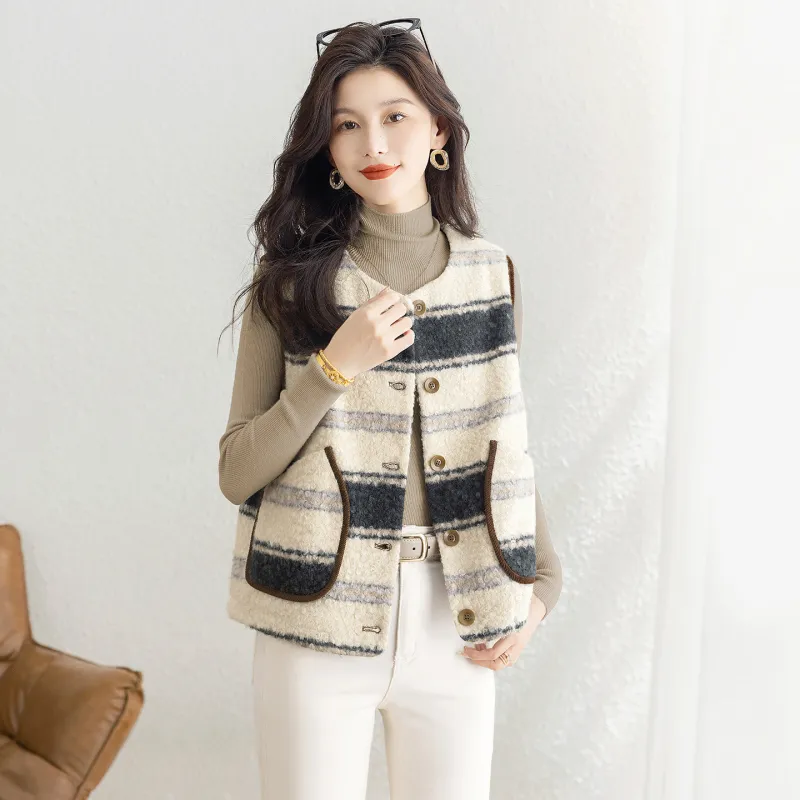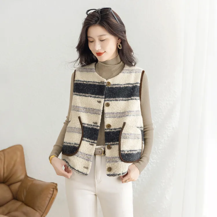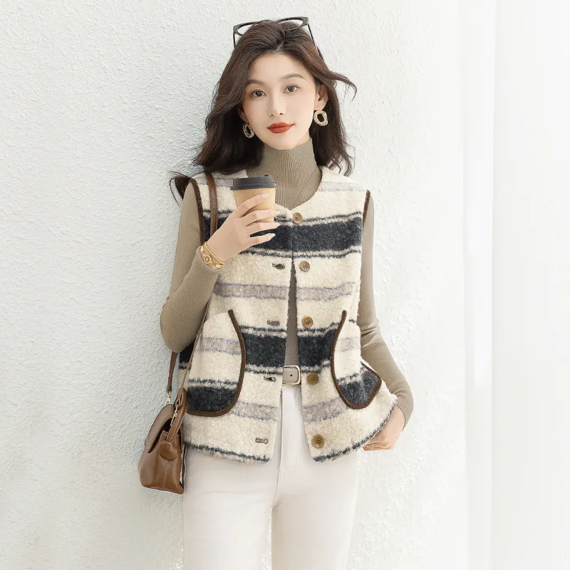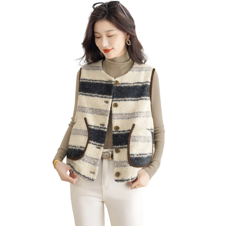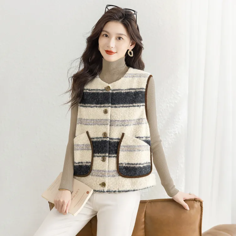 SIBAISHE Черный Абрикосовые Полосы Женские Жилеты