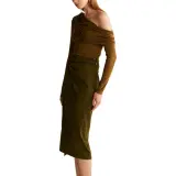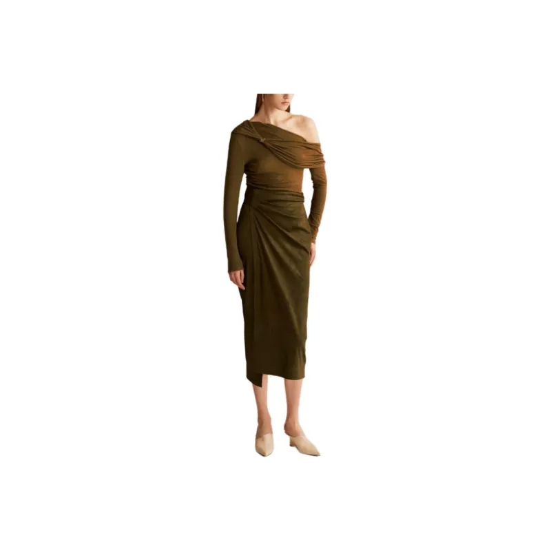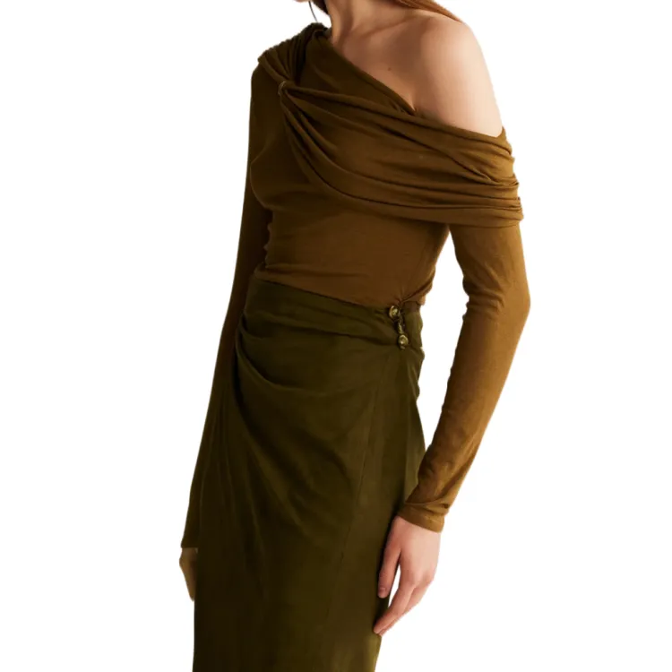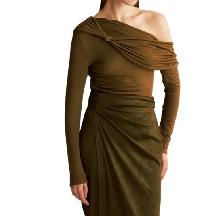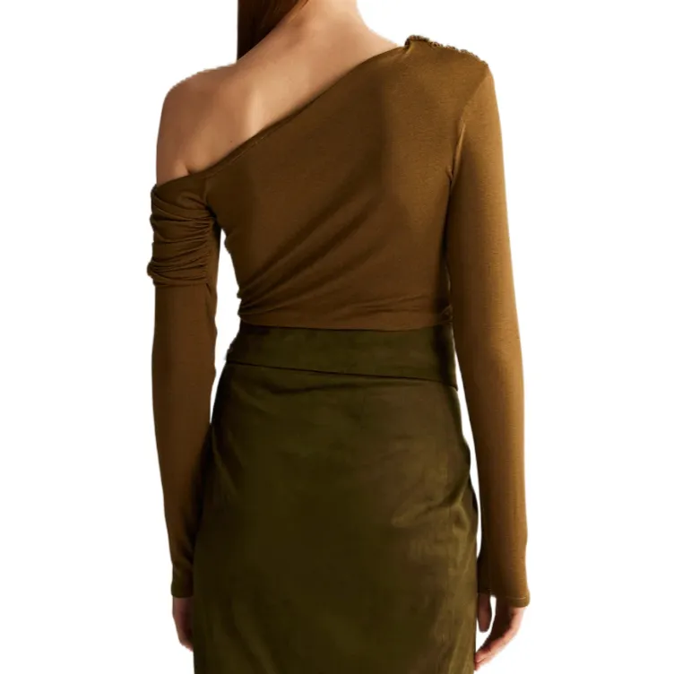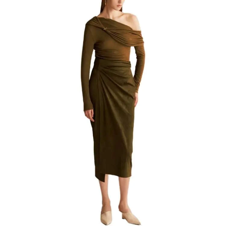 SIJIASUDIO Оливковый коричневый Женский Трикотаж