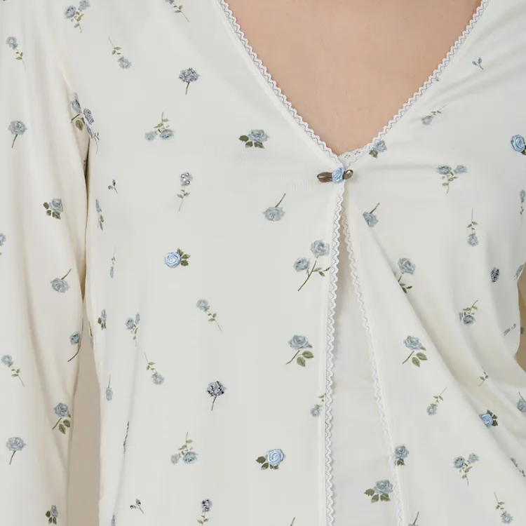 Цвет:Синяя роза с принтом, комплект одежды (топ с длинным рукавом + штаны)