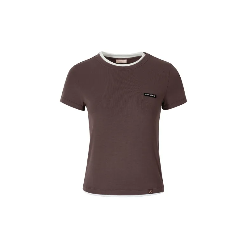 Облегающий крой, короткий рукав, шоколадный коричневый