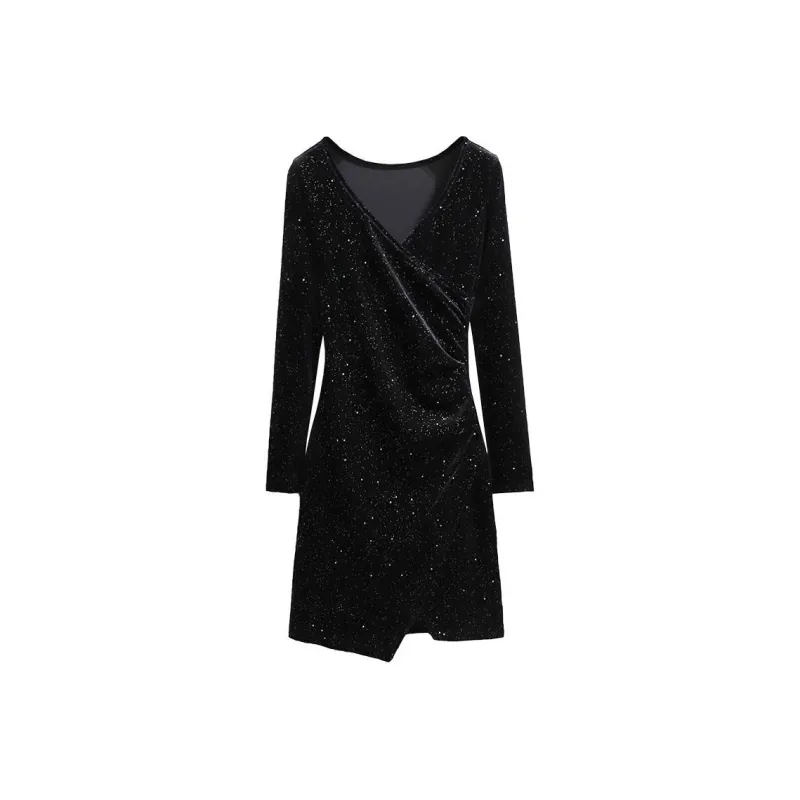 Silky Queen Длинное платье с длинными рукавами женское черное