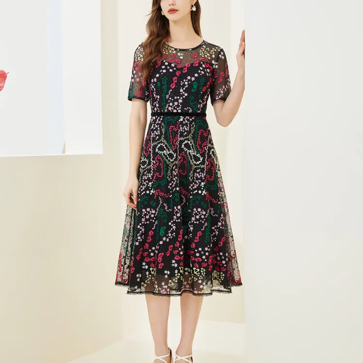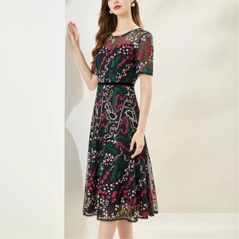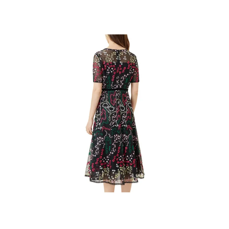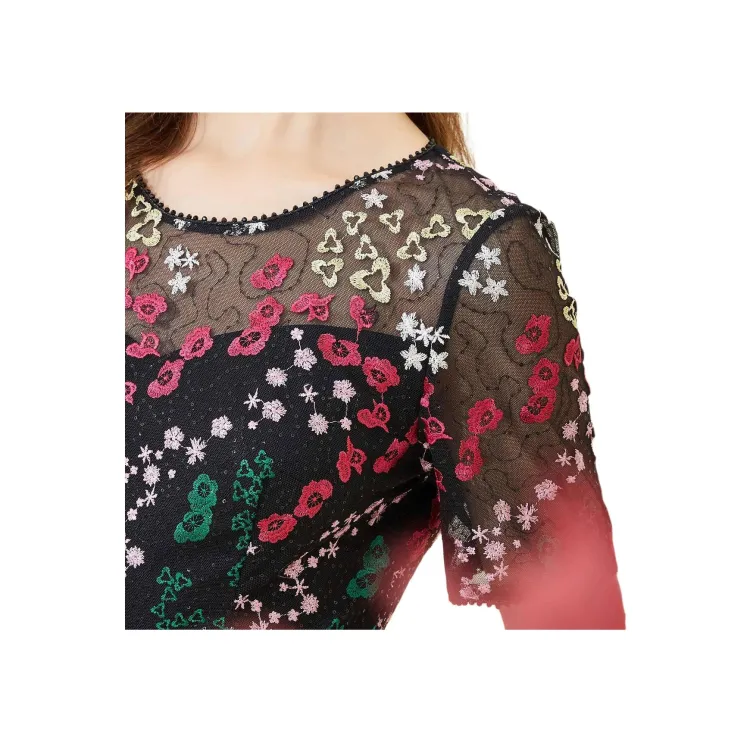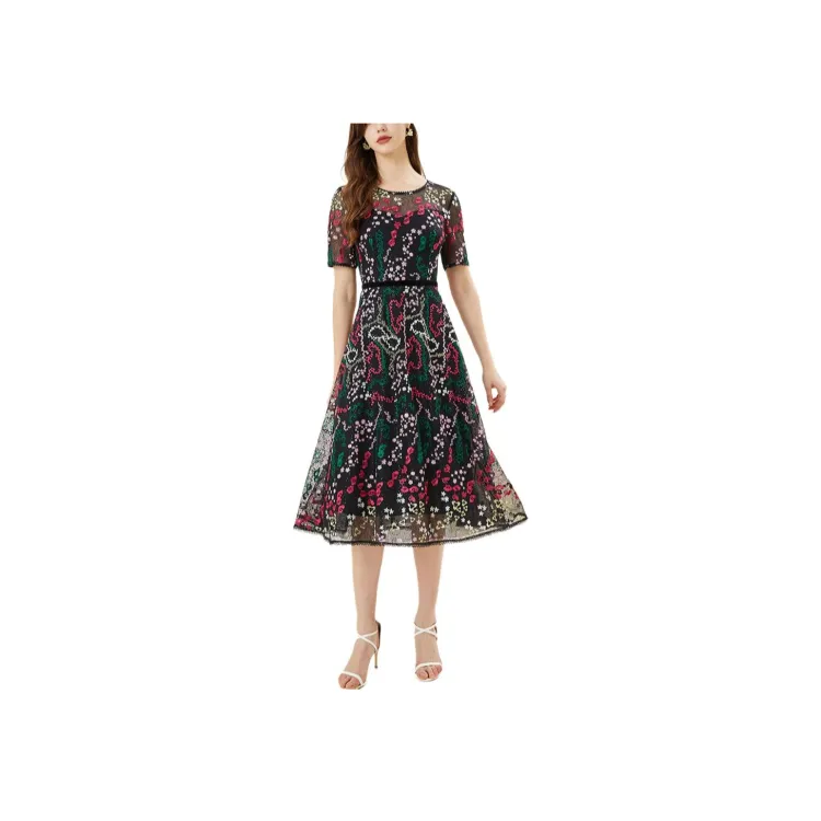Silly Короткий рукав Платье Женское Черная подошва Розовые цветы