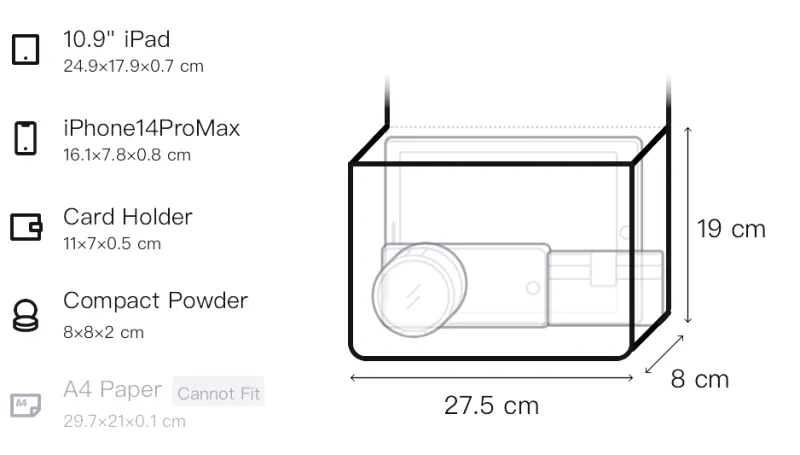 Верхняя одежда Длина: 24 см, Низ Длина: 27,5 см, Ширина: 8 см, Тело Длина: 19 см
