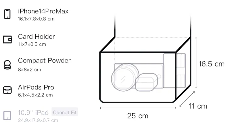 Верхняя одежда Длина: 25 см, Низ Длина: 28,5 см, Тело Ширина: 11 см, Тело Длина: 16,5 см