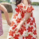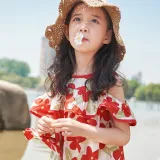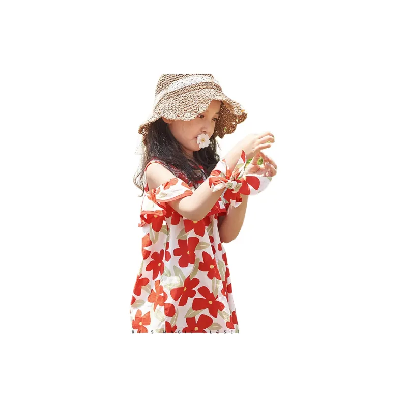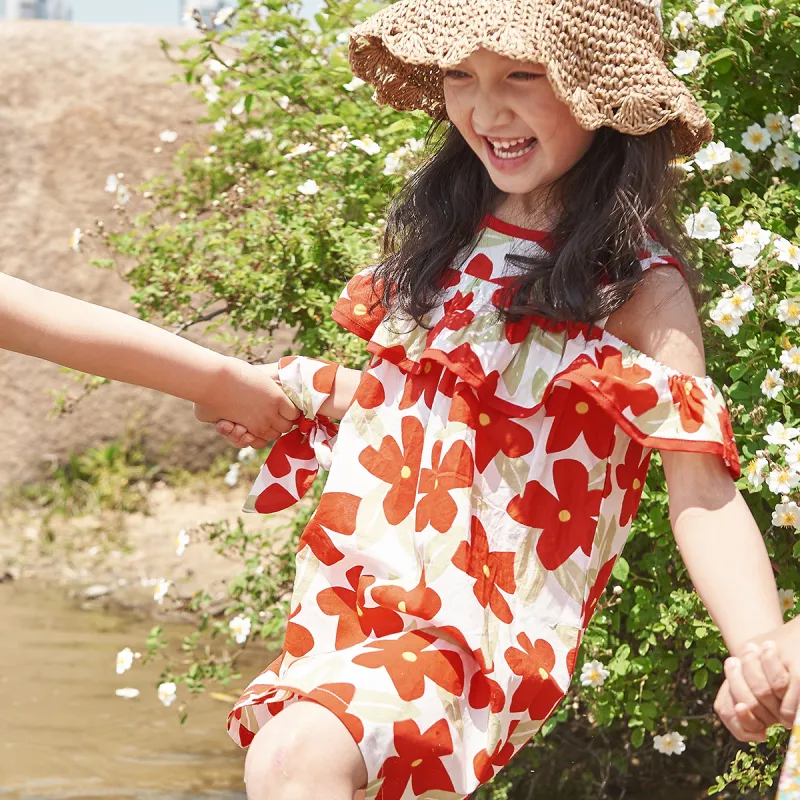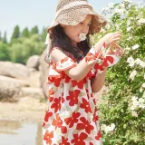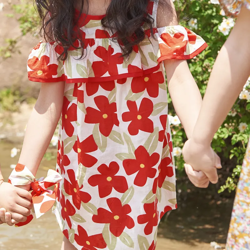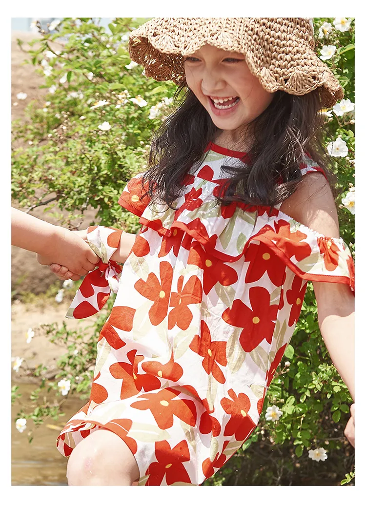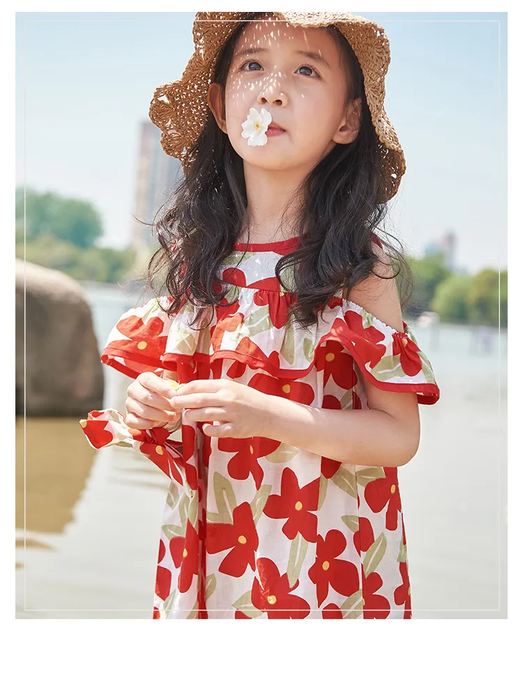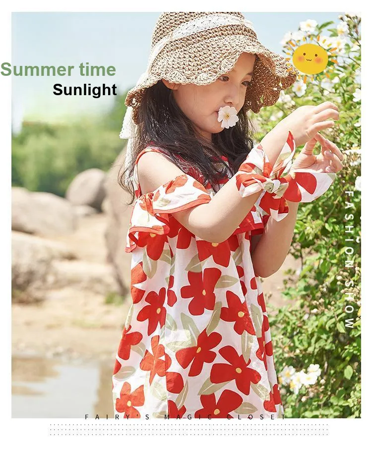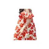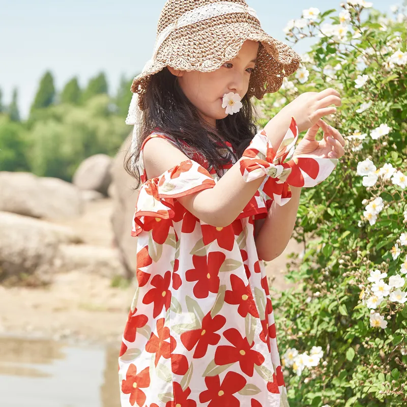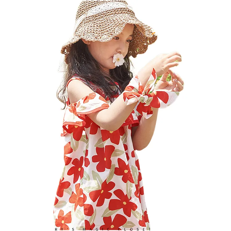 Simyke Женский Летний Платье 2024 Новый Pure Cotton Off Плечо Романтическое Цветочное Платье Модное Платье Детское