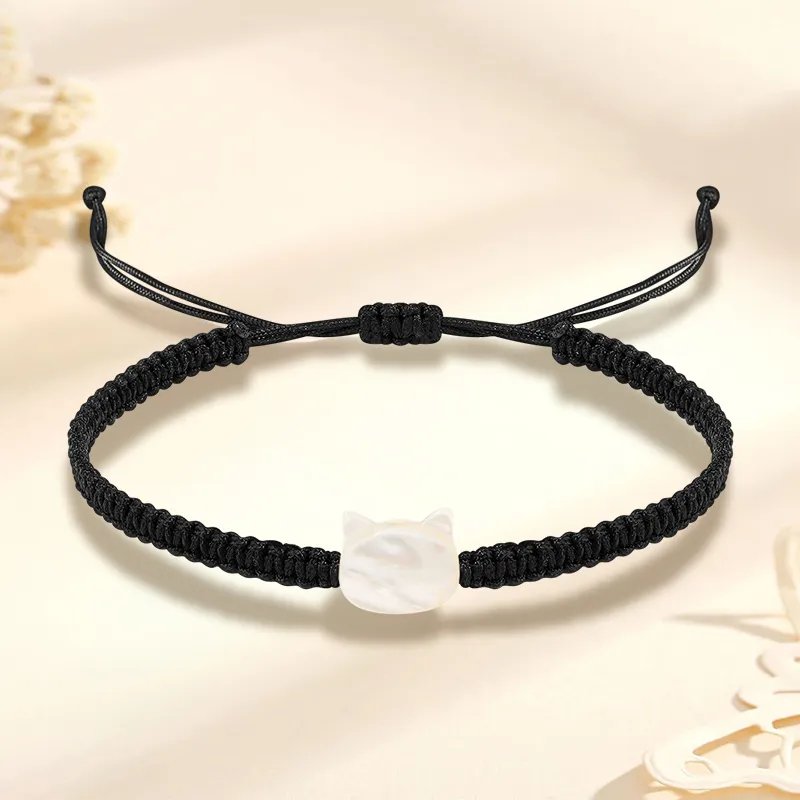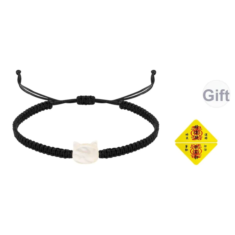 Черный и белый браслет с подвеской в виде кошки, шнурок, 1 пара (включает украшение в виде треугольника "Удача")