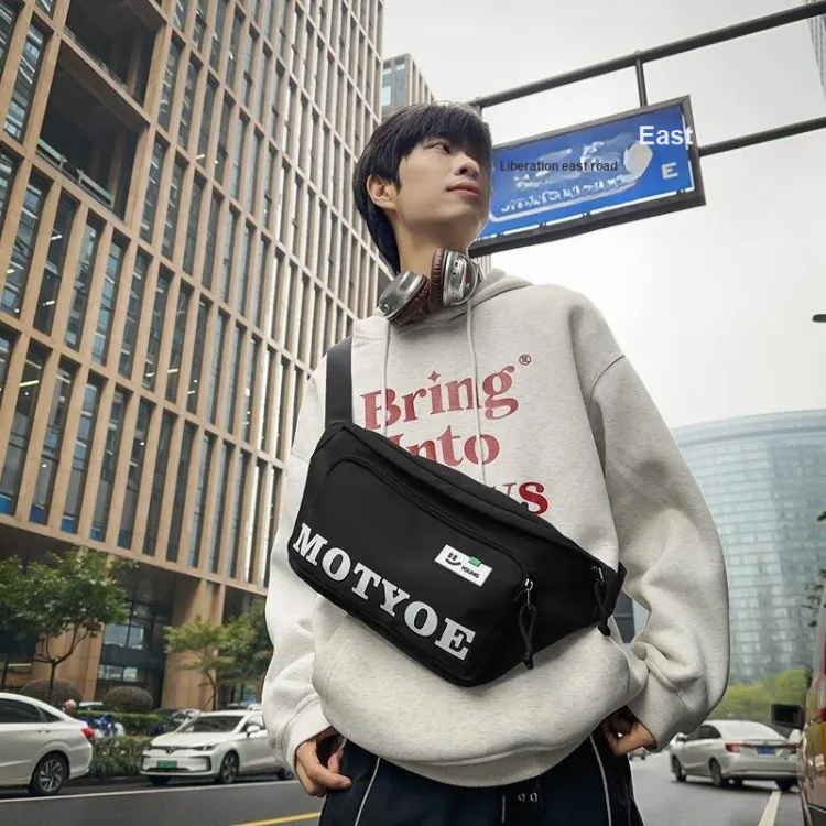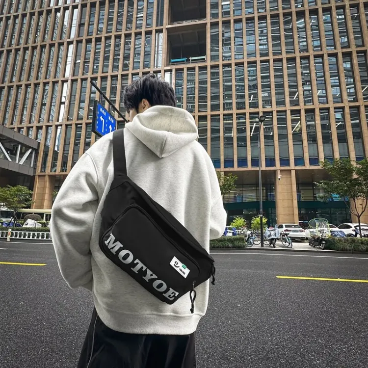 Single Warehouse Нейлон Через плечо Бананка Унисекс Серый Черный Оранжевый Зеленый Синий