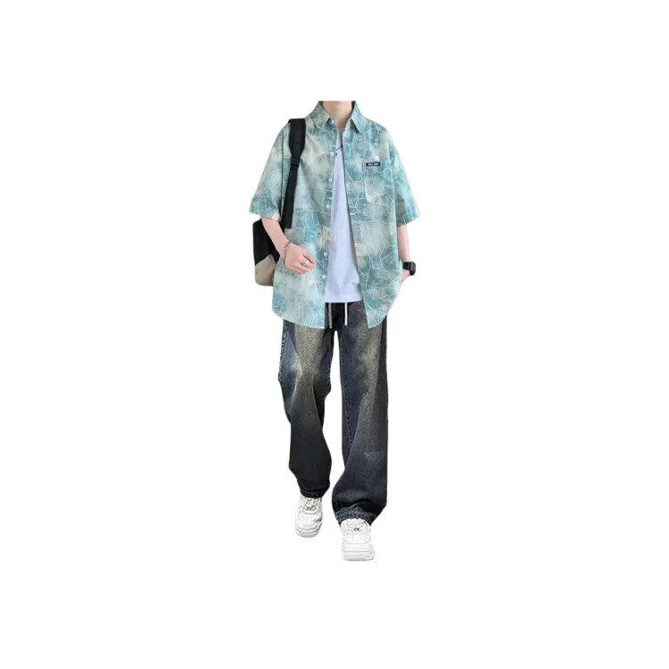 Цвет:Зеленая рубашка + белая футболка + черные джинсы