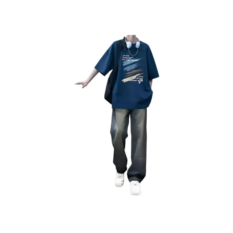 Темно-синий синий с короткими рукавами + джинсы синего цвета
