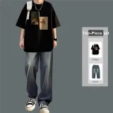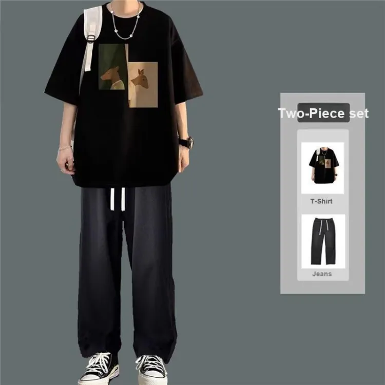 Двойная головка, олень, черный + черный, джинсы [набор из 2 предметов]