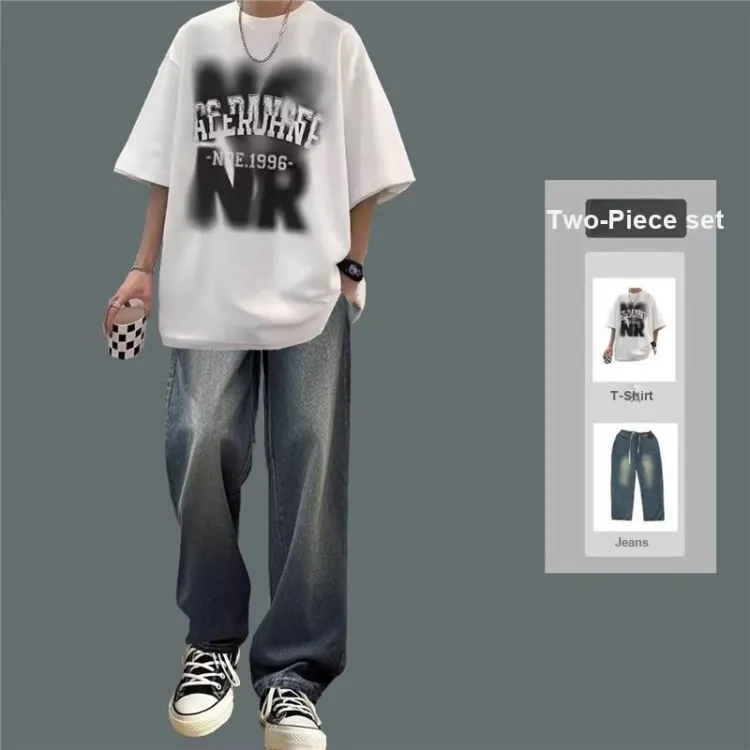 NR Белый + Джинсы Синий [Комплект из 2 предметов]