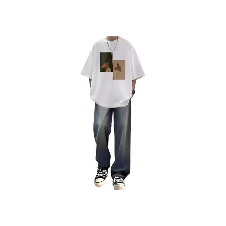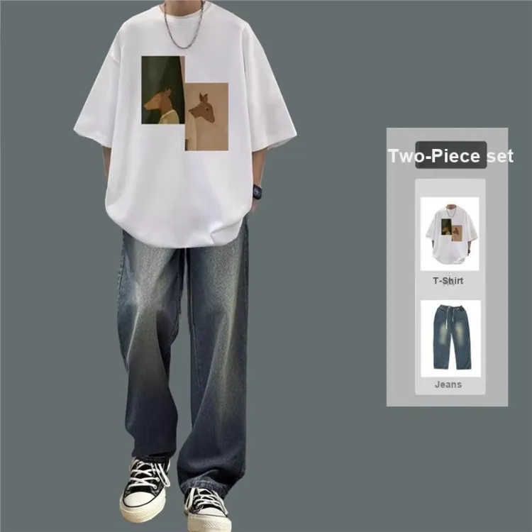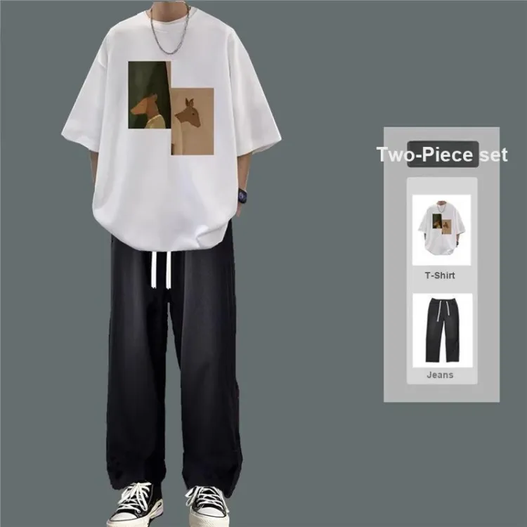 Двойная головка, олень, белый + черный, джинсы [набор из 2 предметов]