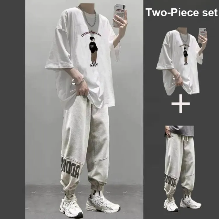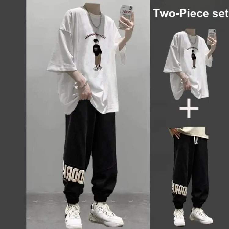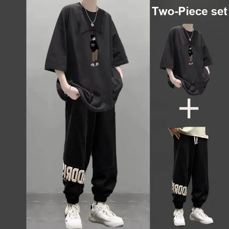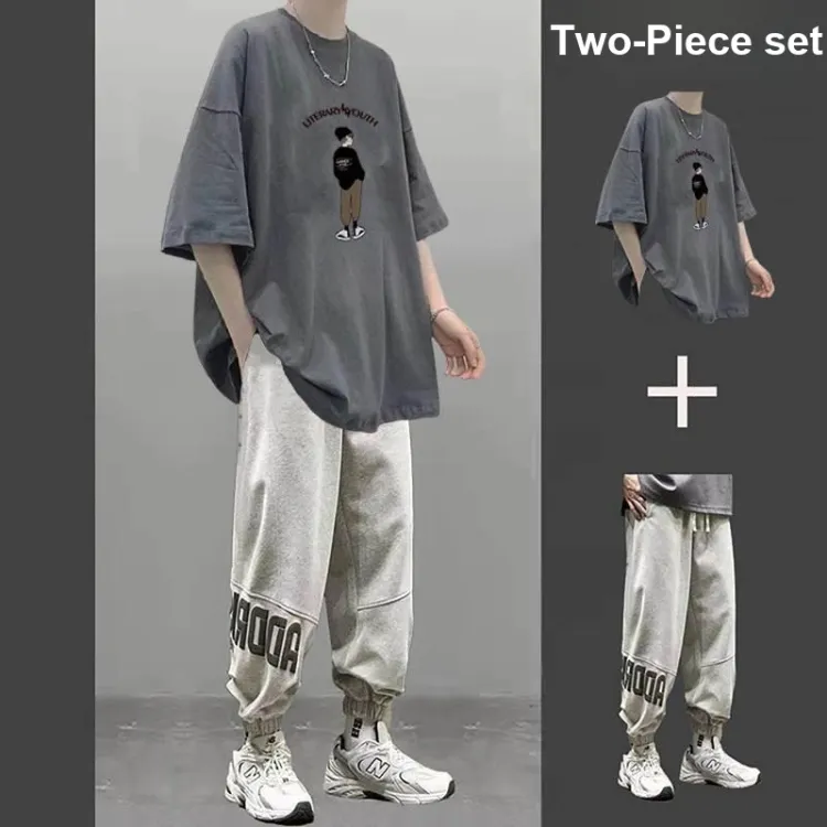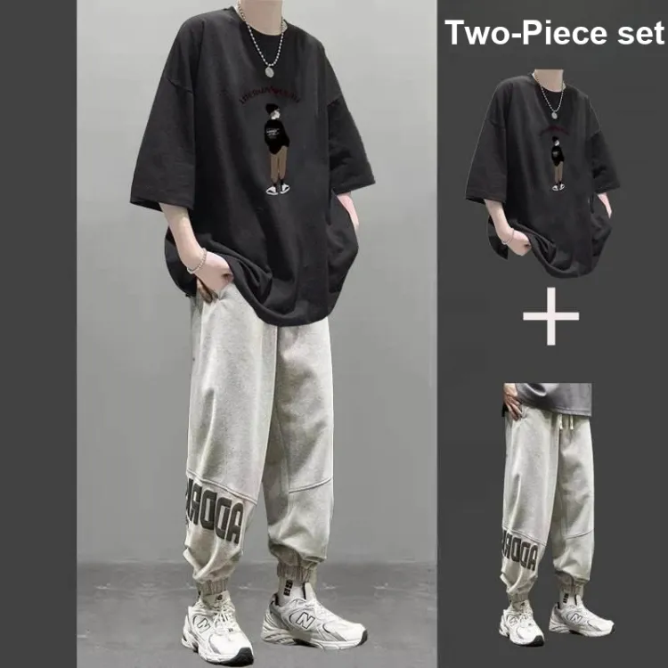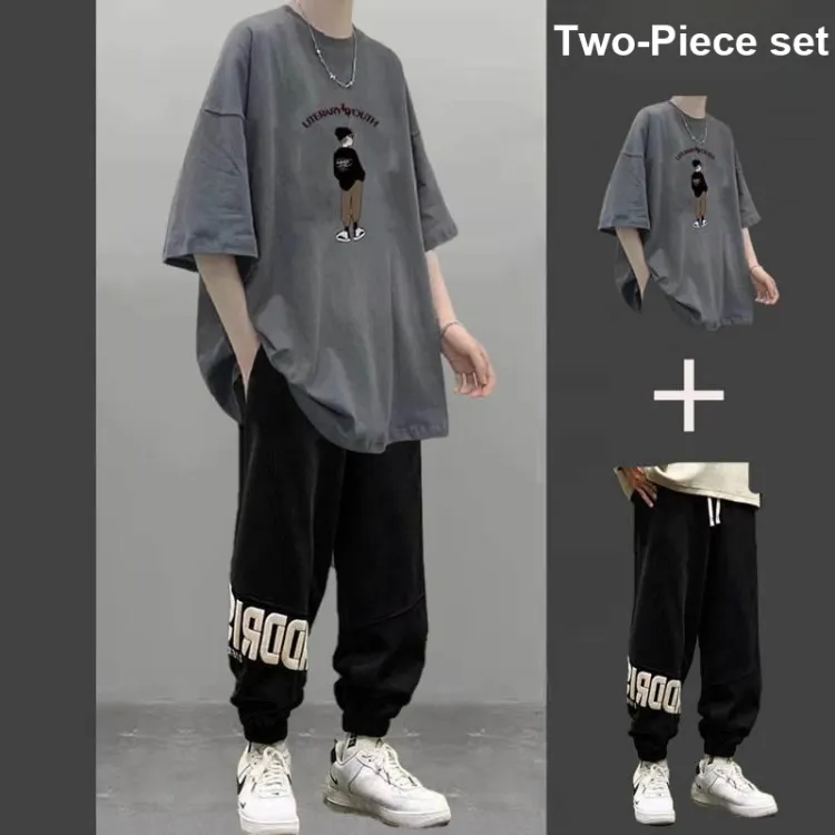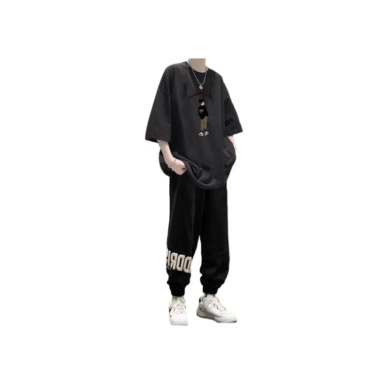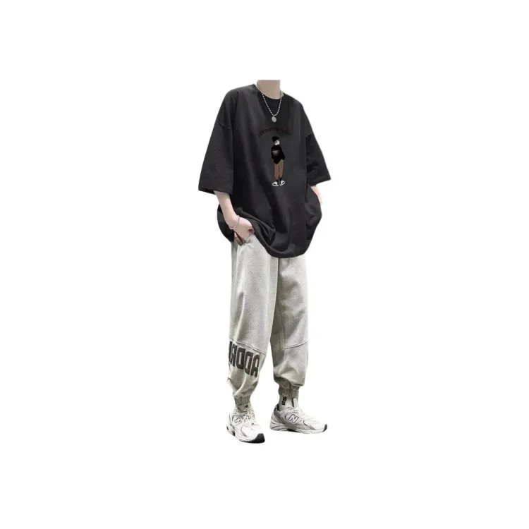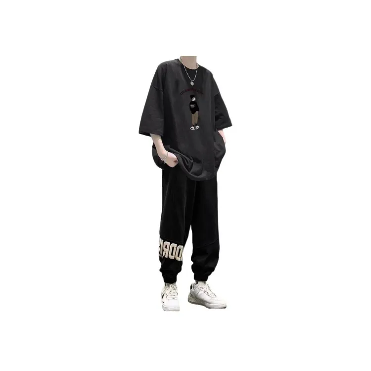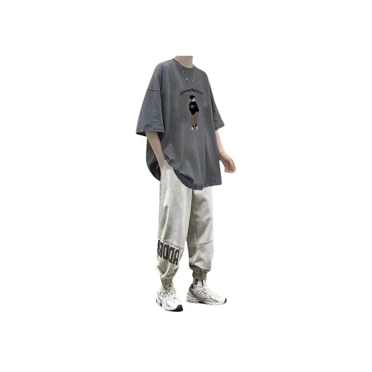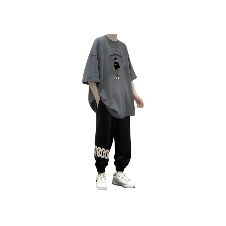 2 пачки T36 100% хлопок футболка с коротким рукавом серый + MC06 штаны черные