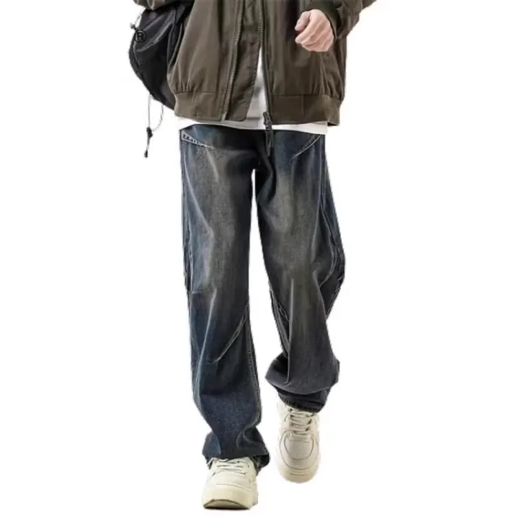 Трехкомпонентный комплект: С капюшоном серый свитер + плиссированные винтажные синие джинсы + черный внутренний слой