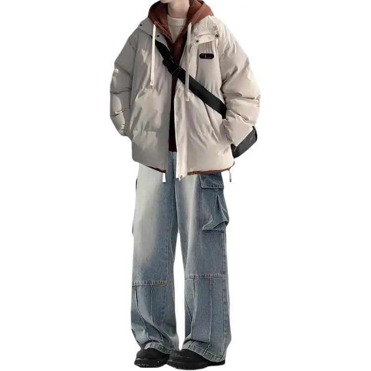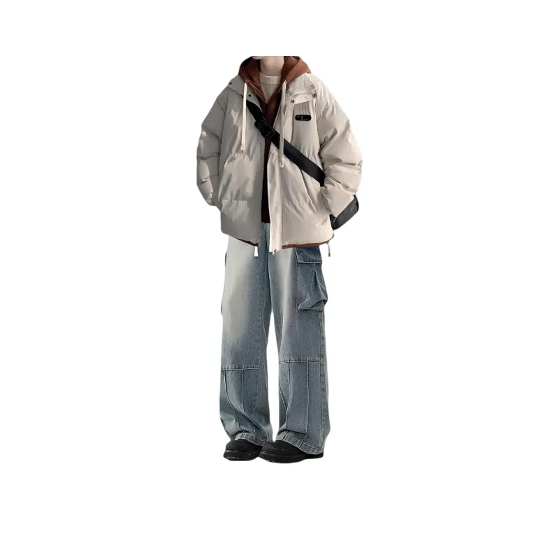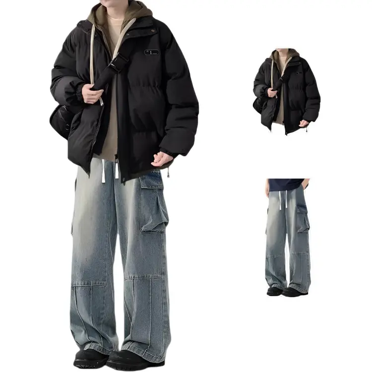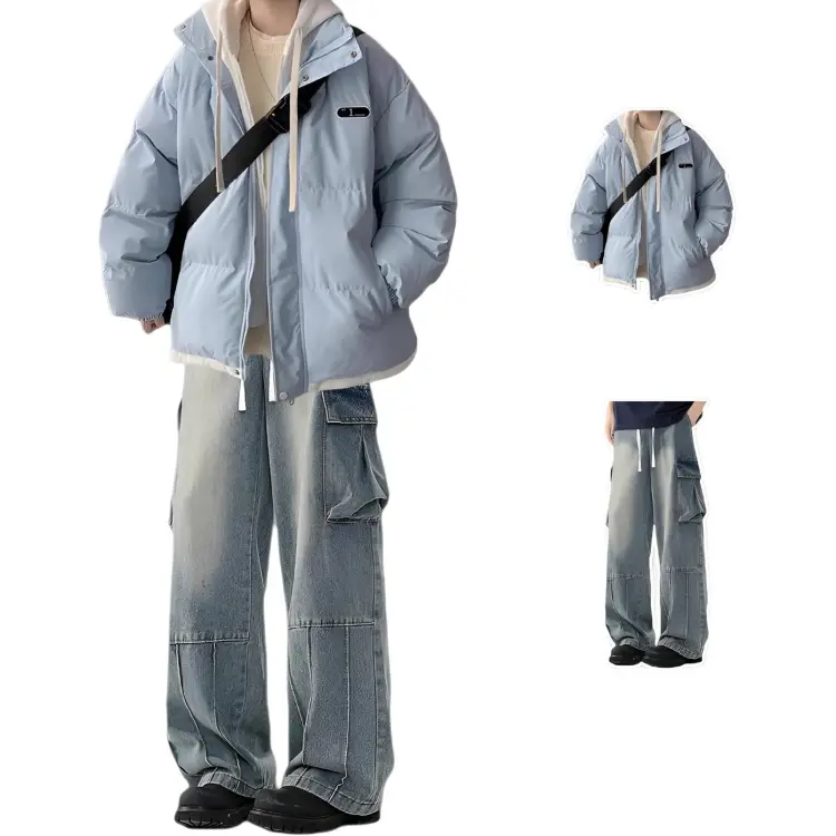 Двухкомпонентный комплект (Светло-синий хлопковый пуховик + Черные джинсы)