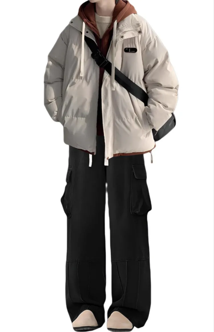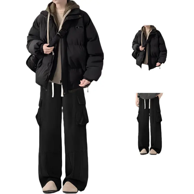 Двухкомпонентный комплект (Абрикосовый хлопковый пуховик + Черные джинсы)