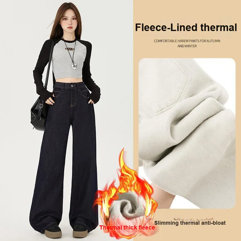 Джинсовые синие штаны из толстого флиса