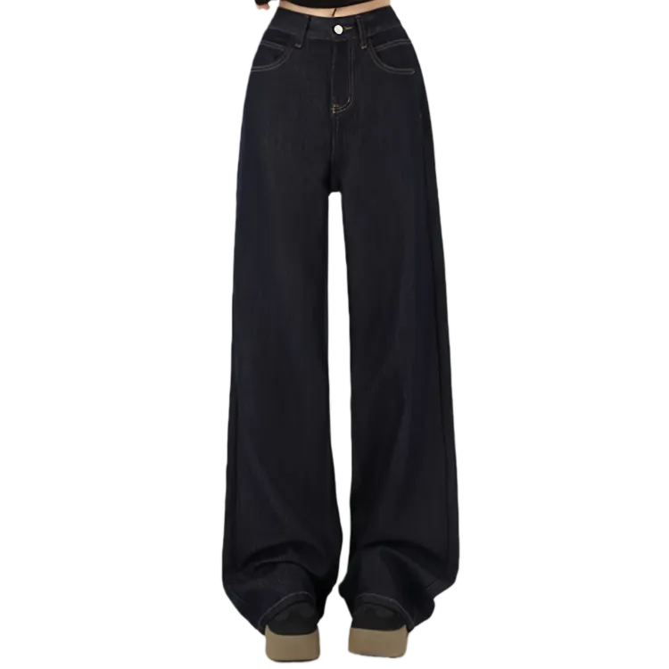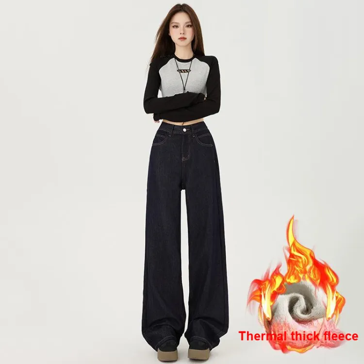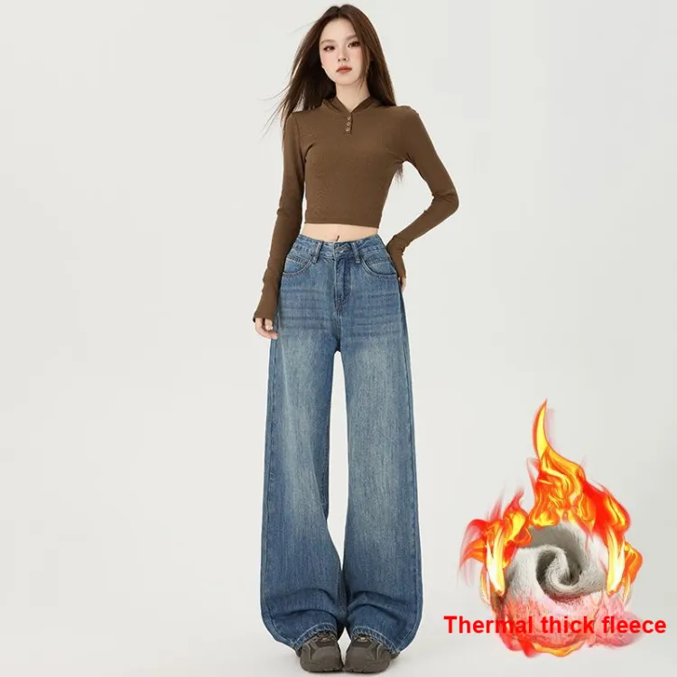 Джинсовый синий, утолщенный и с флисовой подкладкой, увеличенная длина