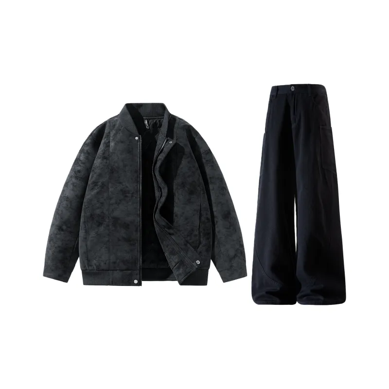 Комплект:Чёрное пальто с подкладкой + чёрные штаны