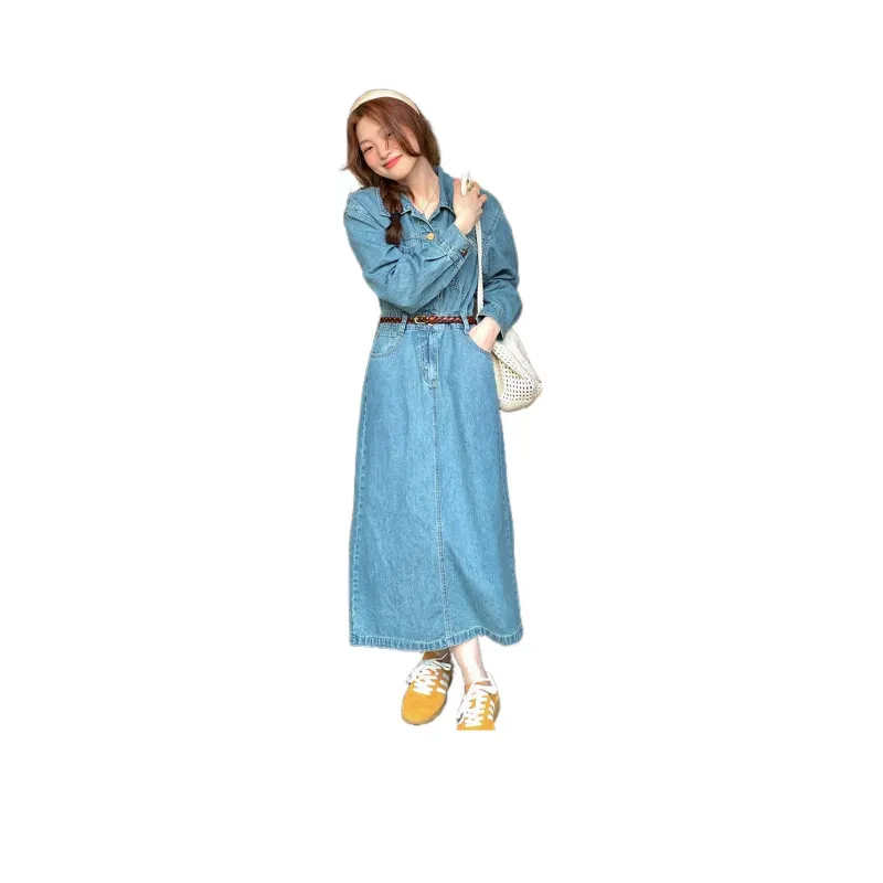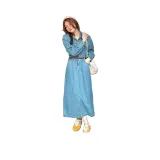 SISILYON STUDIO Длинное платье с длинными рукавами женское винтажный синий
