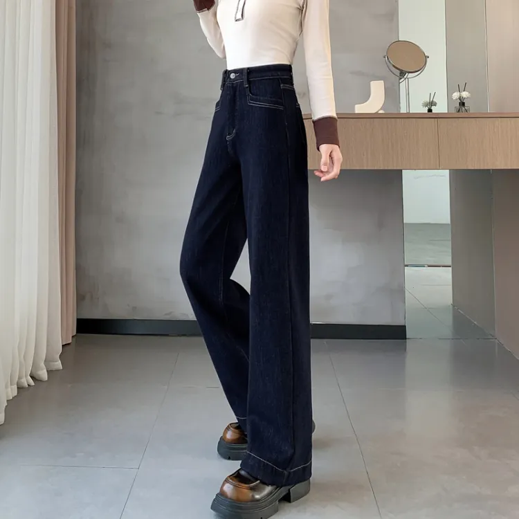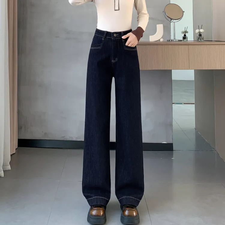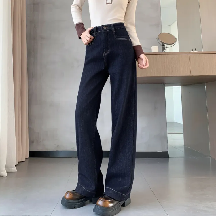 SITOL Темно-синие джинсы с флисовой подкладкой для женщин