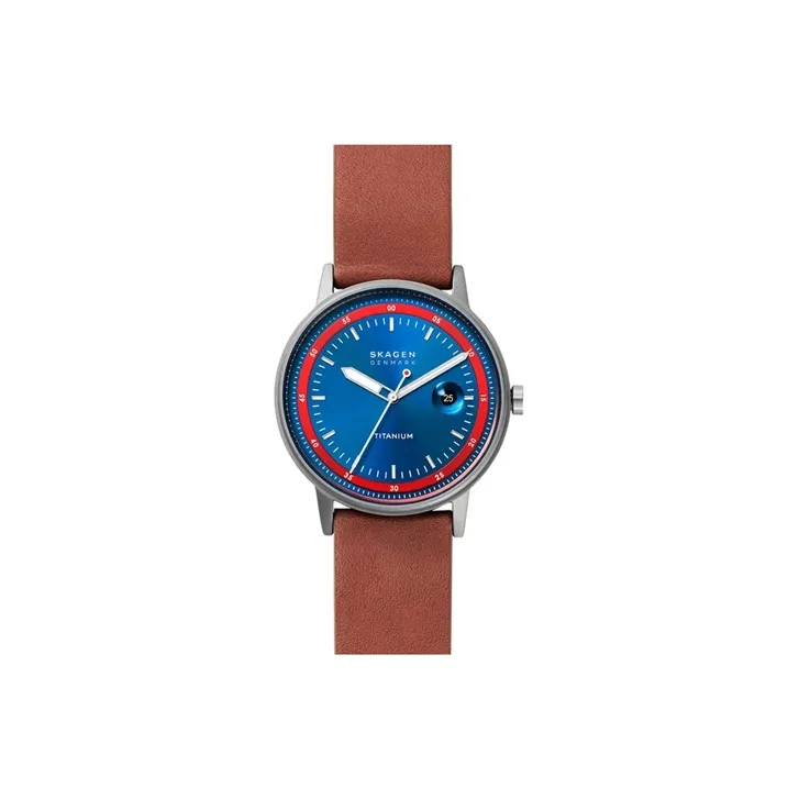SKAGEN Наручные часы Кварцевый механизм Кожаный ремешок 44 мм Синий циферблат Мужские часы