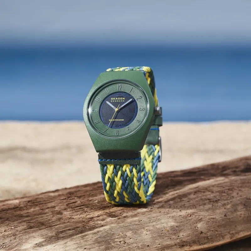 SKAGEN Watch Кварцевый механизм пластиковый ремешок PC зеленый циферблат унисекс