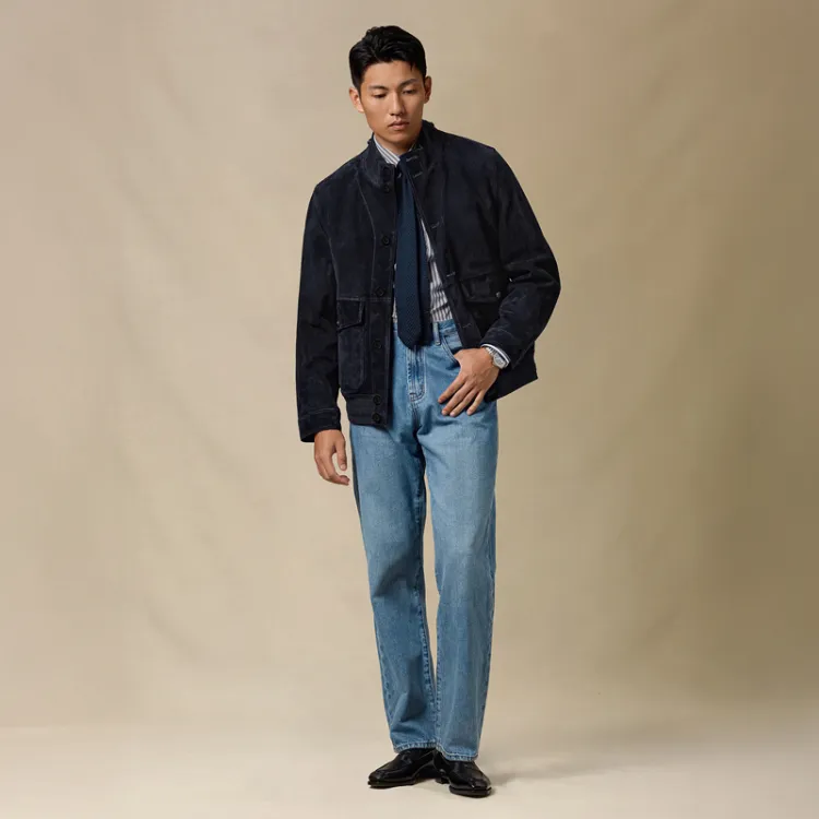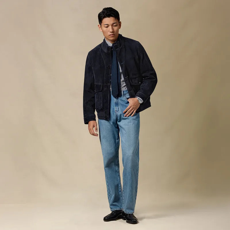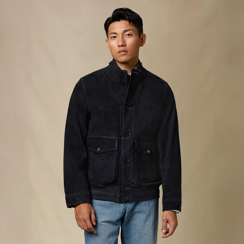 SKARO Темно-синий Синий SKH231 Мужская Кожаная Куртка