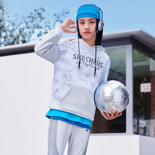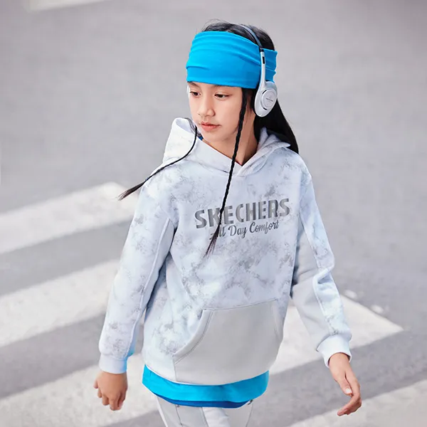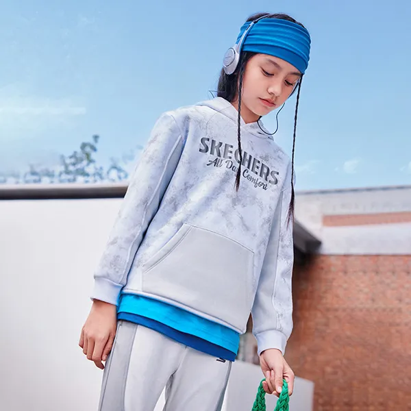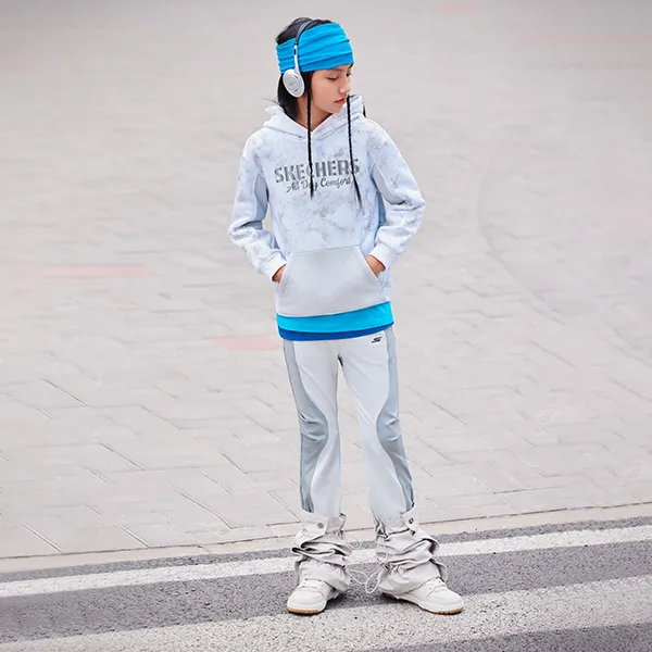 Skechers Comfort Sports and Leisure Series Американский Свитшот Серый Белый Рендеринг Градиентный Подростки