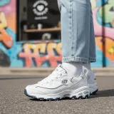 Женские кроссовки Skechers D'LITES 1.0 в стиле "панда" сочетают в себе ретро-дизайн и универсальность, став любимцем модных тенденций. Модель с низким голенищем обеспечивает комфорт и свободу движений. Массивная подошва в casual-стиле не только повышает удобство носки, но и визуально увеличивает рост.