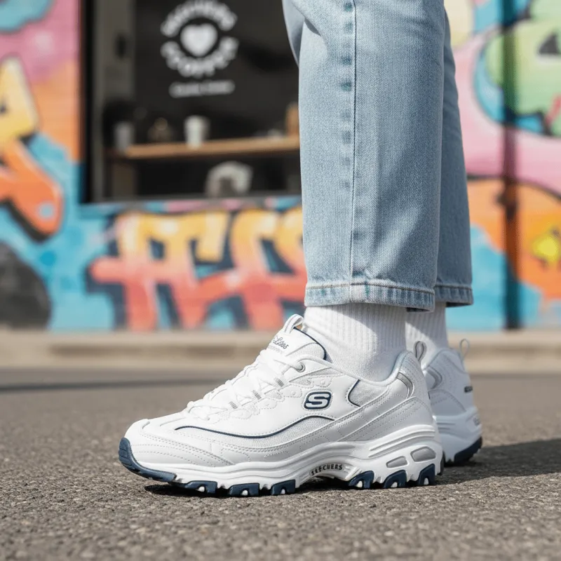 Skechers D'LITES 1.0 идеально сочетаются с джинсами, юбками или шортами, подчеркивая ваш стиль. Эти кроссовки - прекрасный выбор для повседневной носки и активного отдыха, позволяя оставаться в центре внимания без ущерба комфорту.