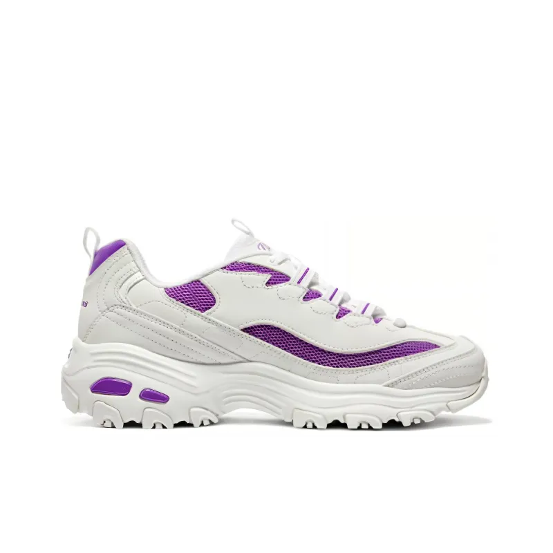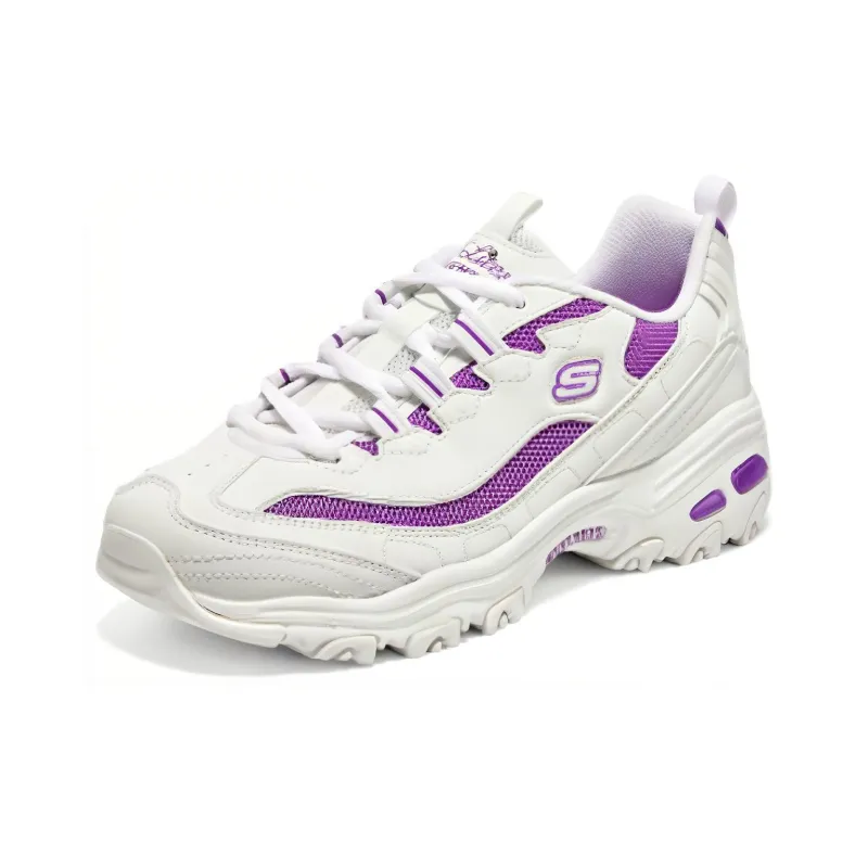 Skechers D'LITES 1,0 Дышащий Черный Белый Золото Низкий Топ Толстая Подошва Кроссовки Женские Белый Фиолетовый