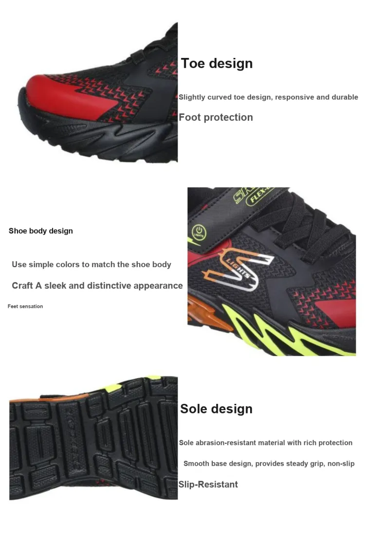 Skechers Flex Светящийся Elite Амортизация Износостойкие Детские Лайфстайл Обувь Черный Красный Подростки